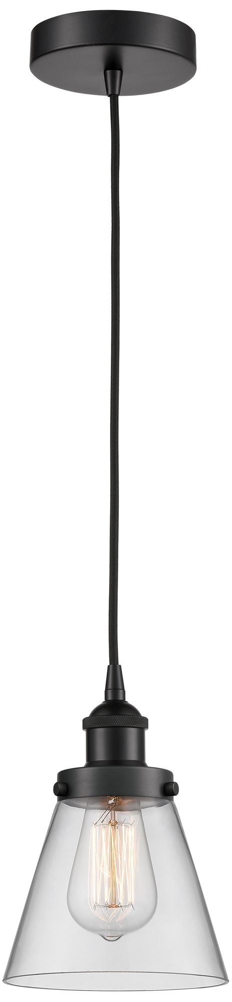 Cone 6" Matte Black Mini Pendant w/ Clear Shade