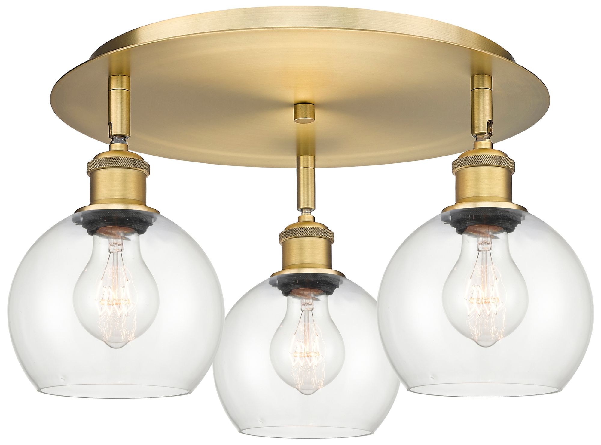 Athens 17.75" Wide 3 Light Brushed Brass Flush Mount With Clear Glass