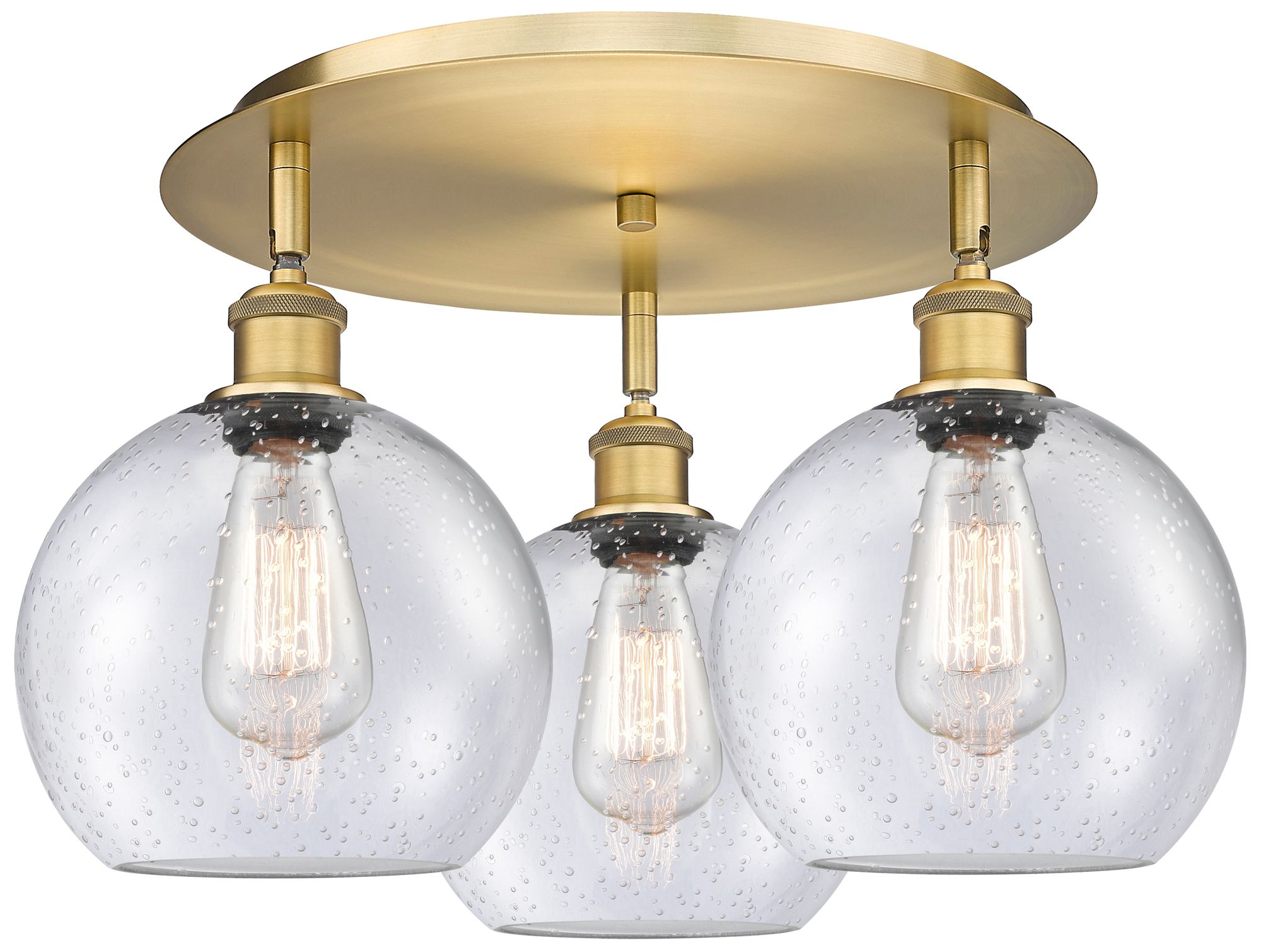 Athens 19.75" Wide 3 Light Brushed Brass Flush Mount With Seedy Glass