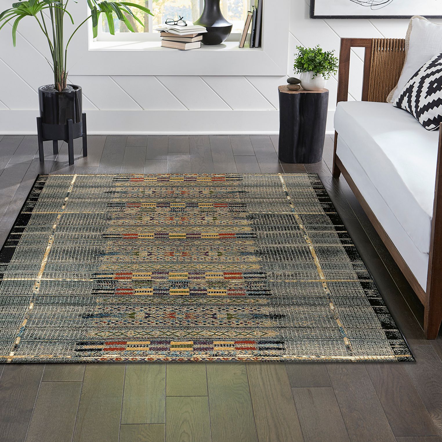 Marina Tribal Stripe 805748 6'6"x9'4" Black Outdoor Area
