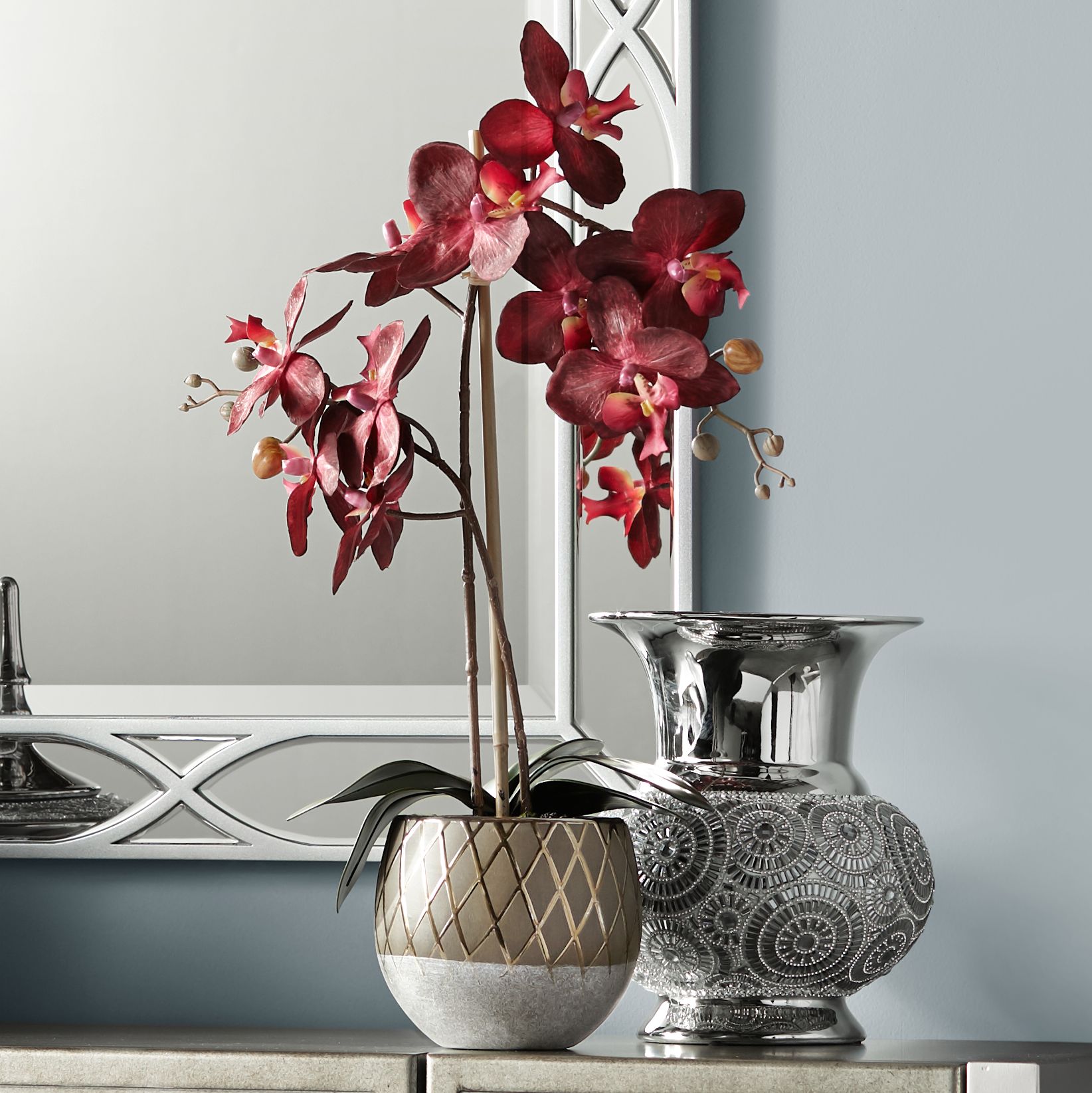 Red Orchid 23" High Faux Flowers in Ceramic Pot