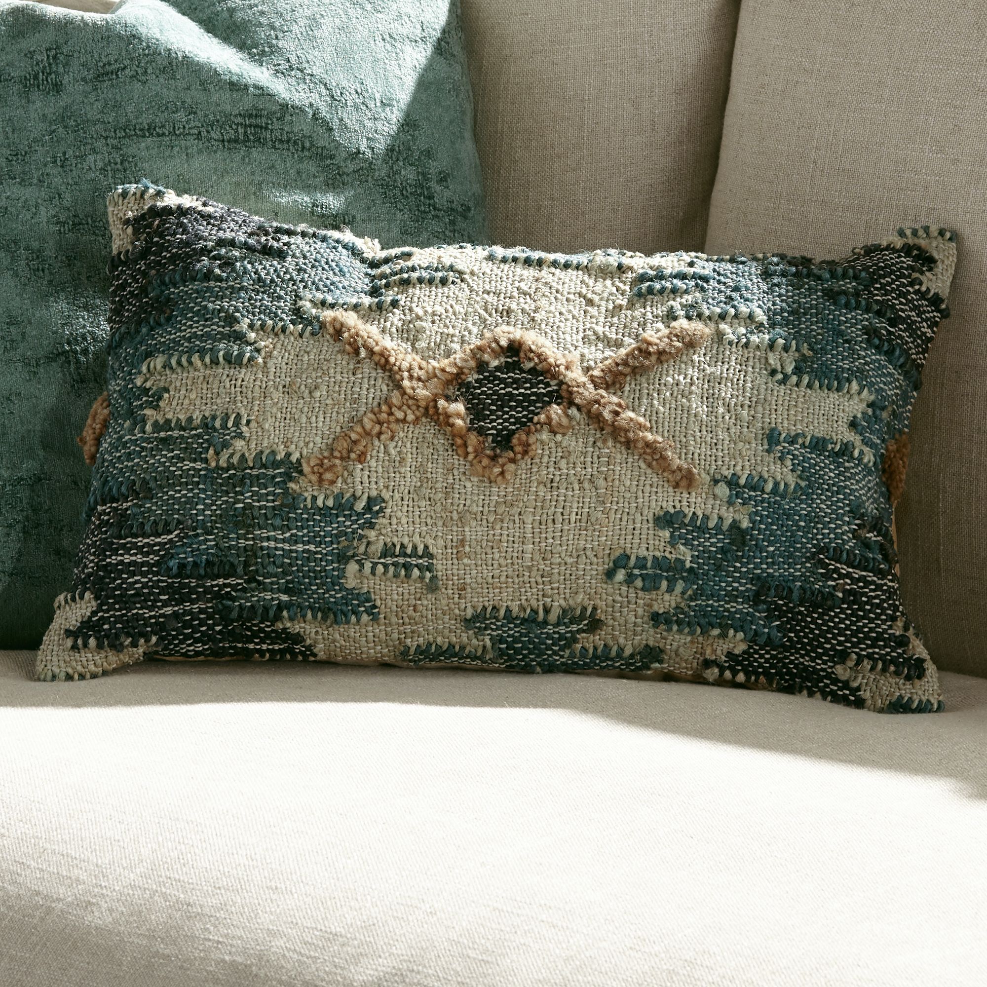 Loloi Singley Blue and White Diamond 21" x 13" Pillow