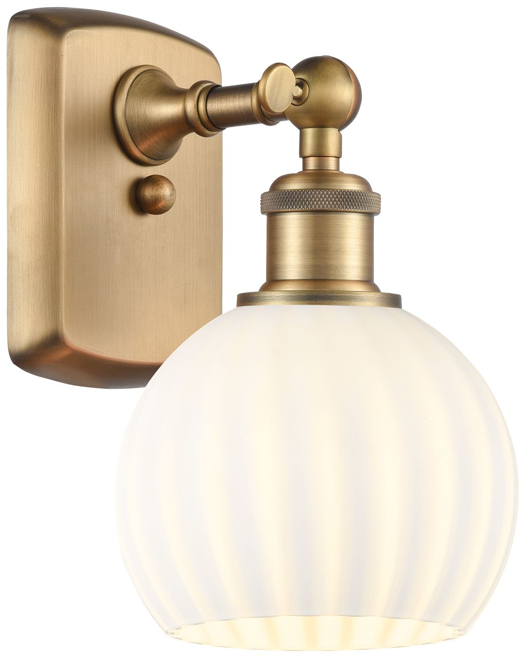 Ballston 9" High Brushed Brass Sconce With White Venetian Shade