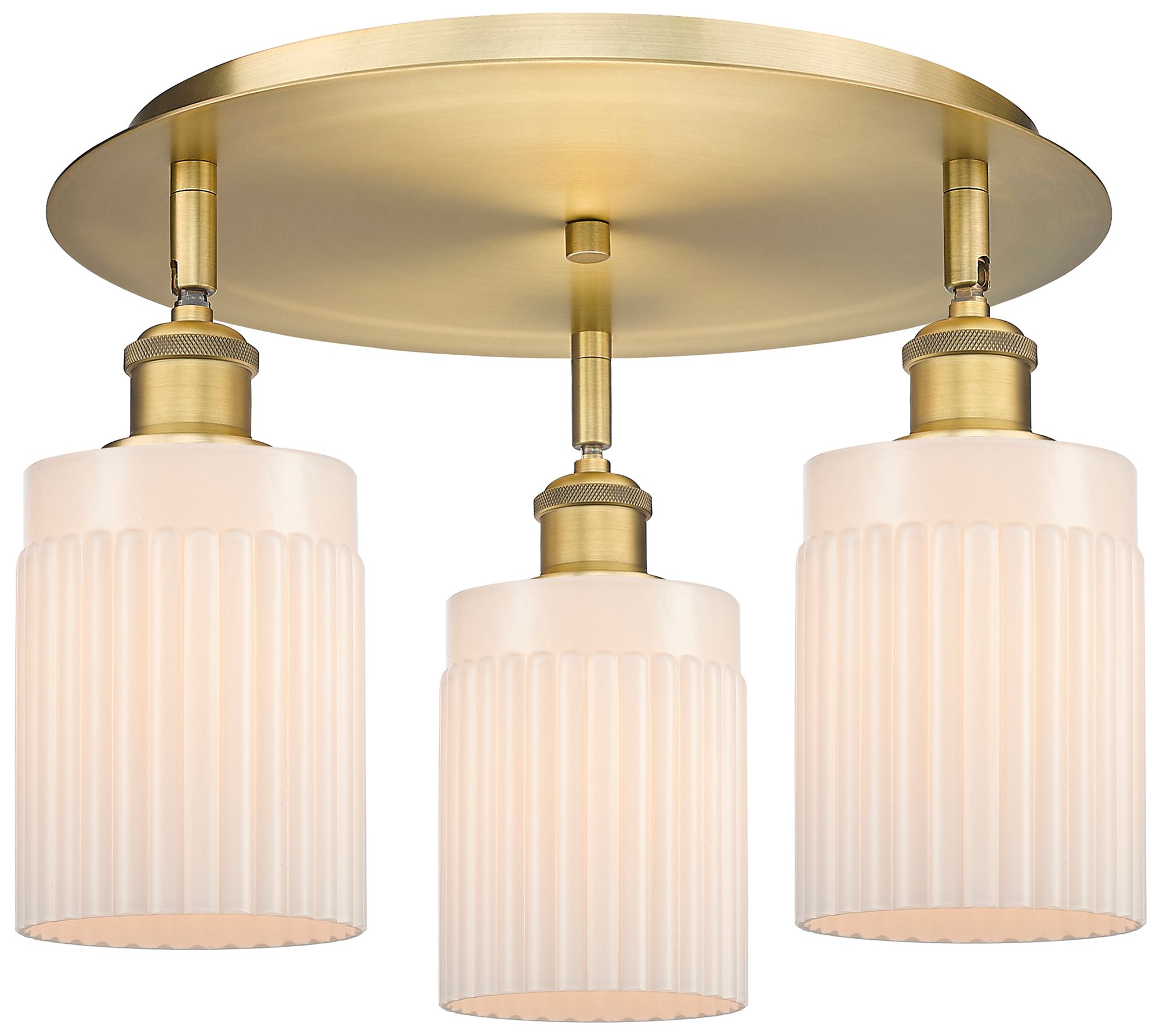 Hadley 16.25"W 3 Light Brushed Brass Flush Mount w/ Matte White Glass