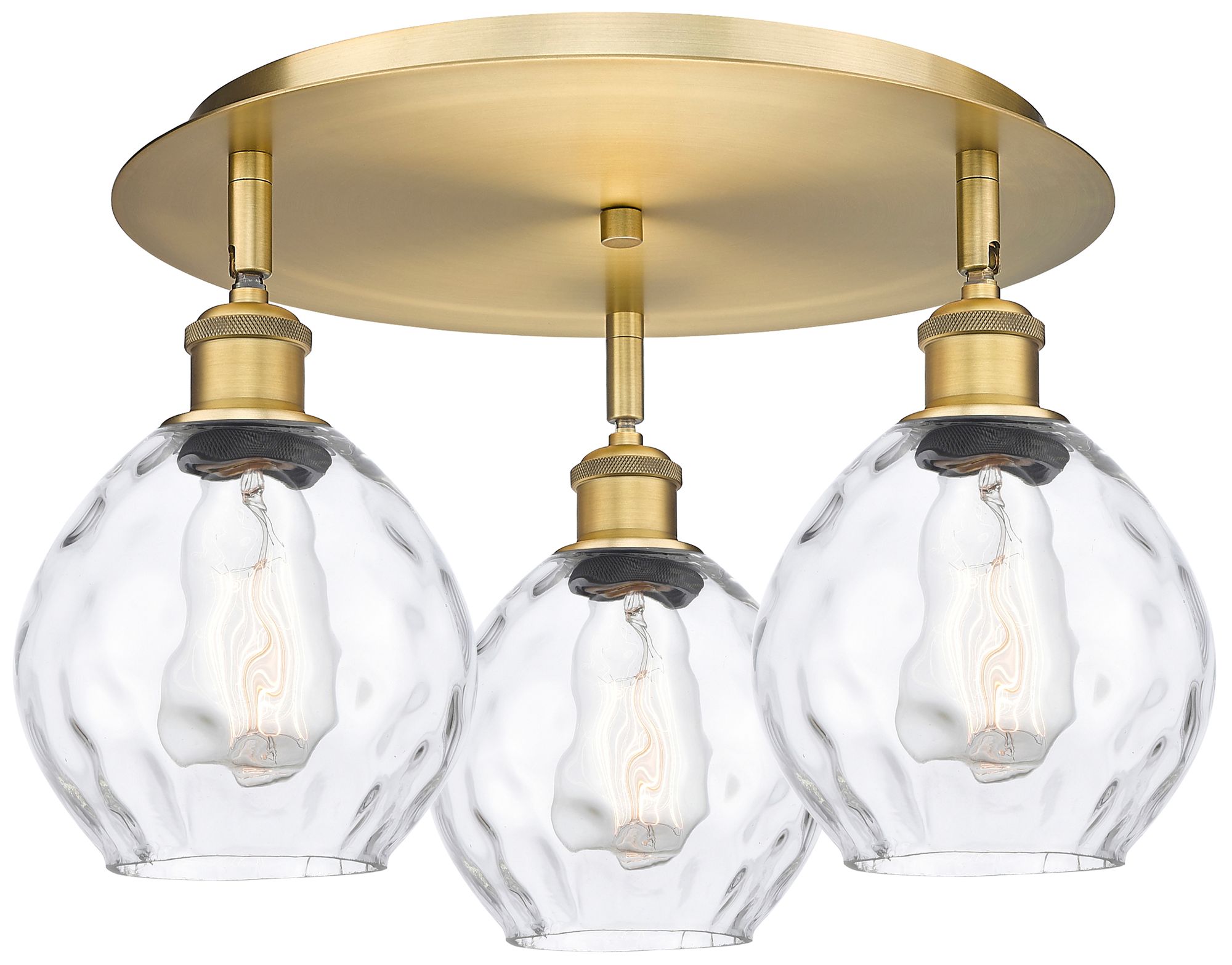 Waverly 17.75"W 3 Light Brushed Brass Flush Mount With Clear Glass Sha