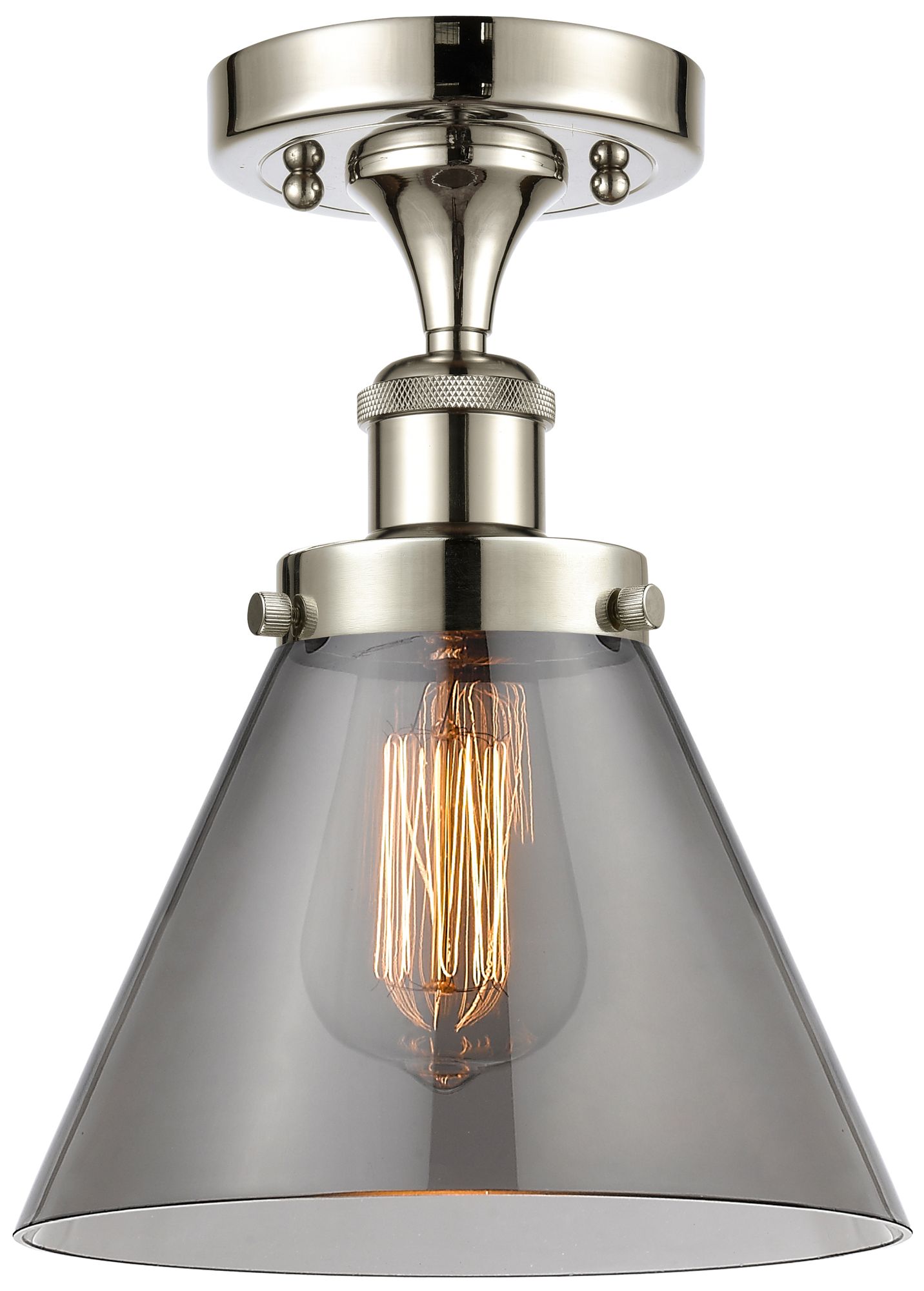 Ballston Urban Cone 8" Semi-Flush Mount - Polished Nickel - Plated Sm