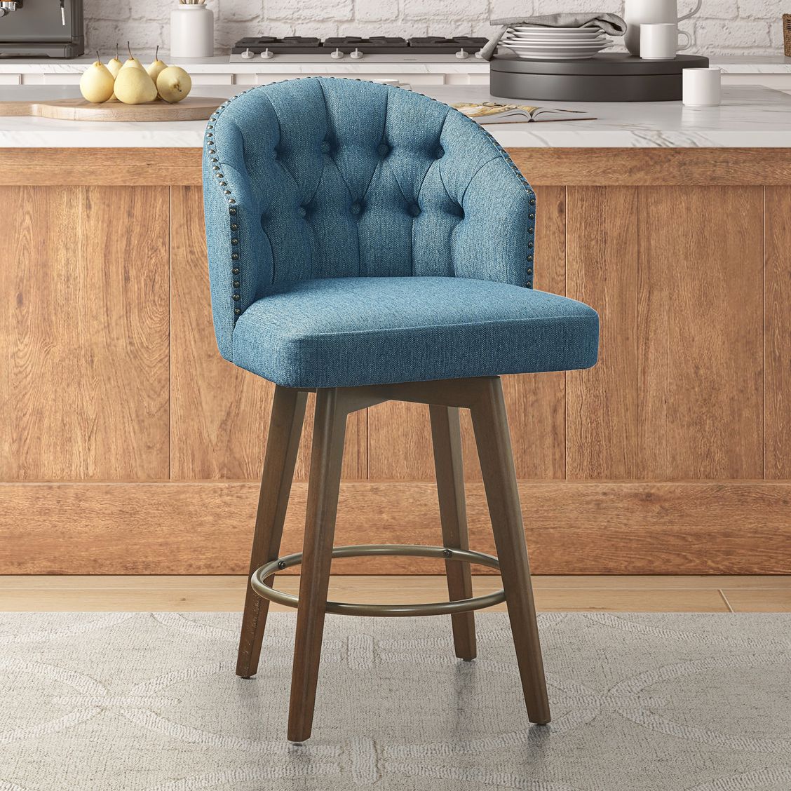 Boyle 26" Blue Tufted Fabric Swivel Counter Stool