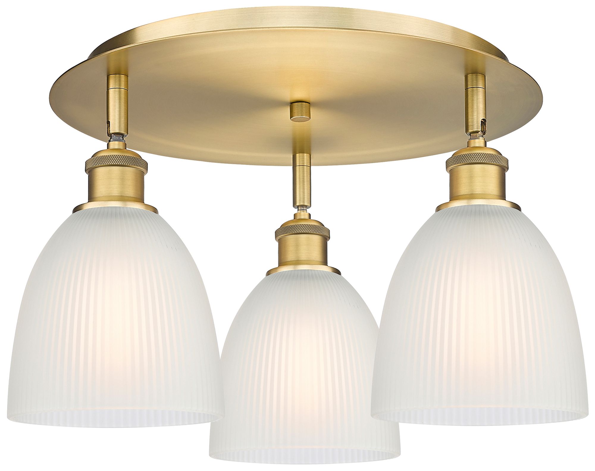 Castile 17.75"W 3 Light Brushed Brass Flush Mount With White Glass Sha