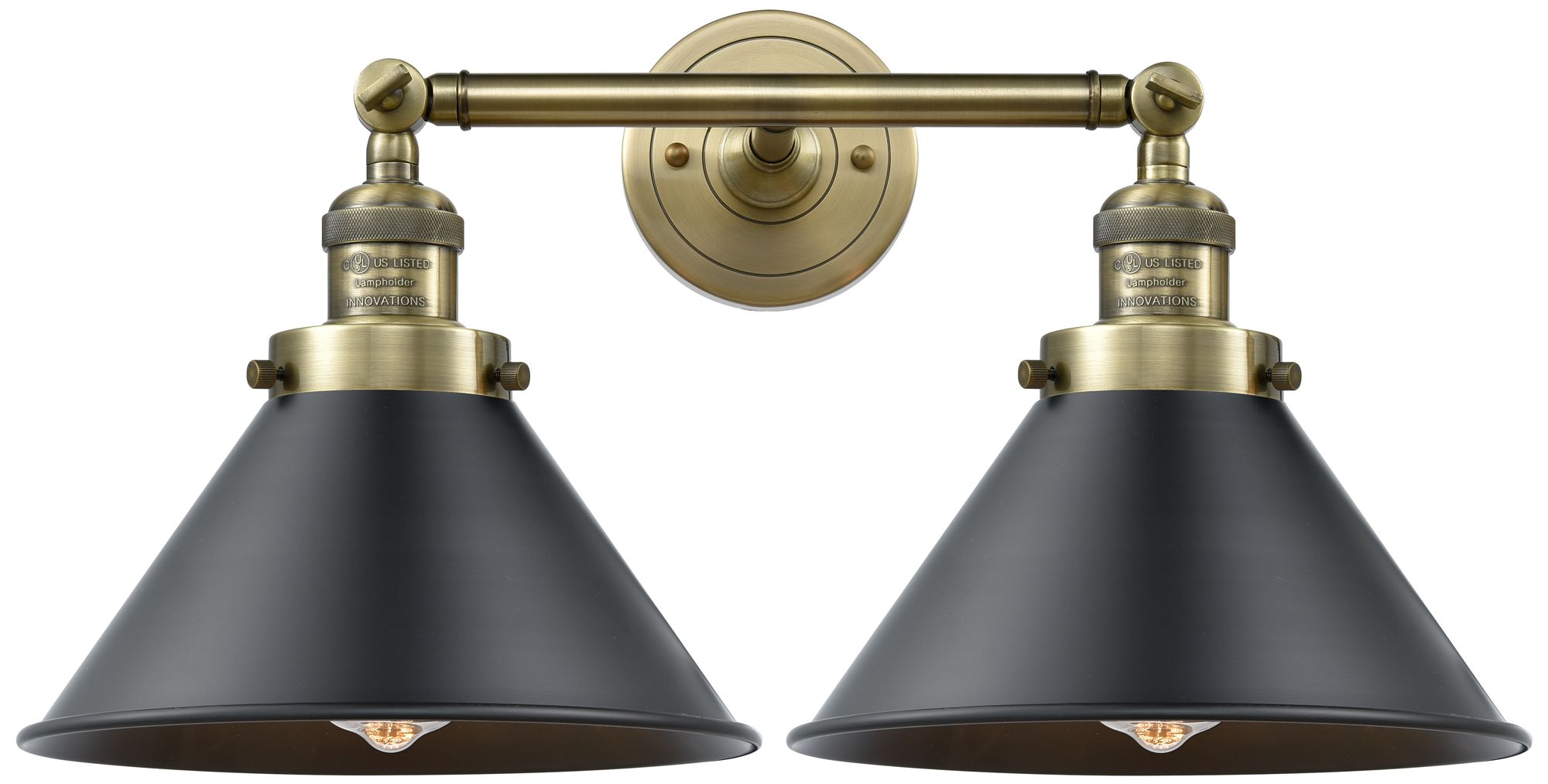 Briarcliff 19" 2-Light Antique Brass Bath Light w/ Matte Black Shade