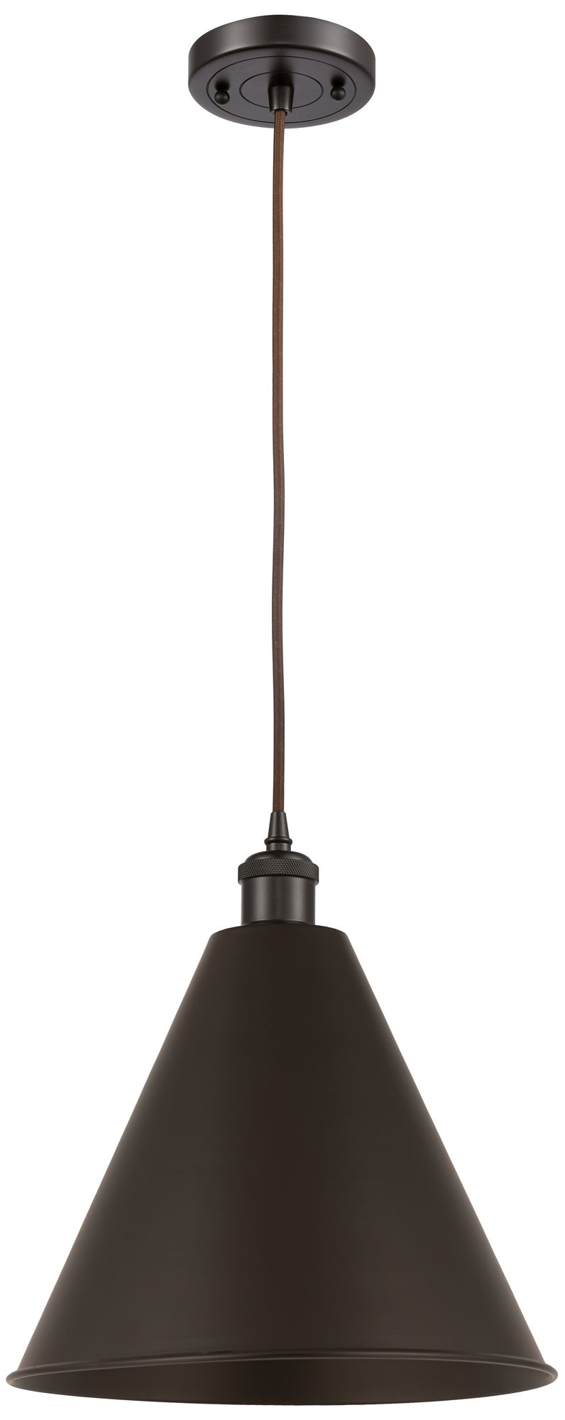 Ballston Cone 16" Wide Bronze Corded Mini Pendant w/ Bronze Shade