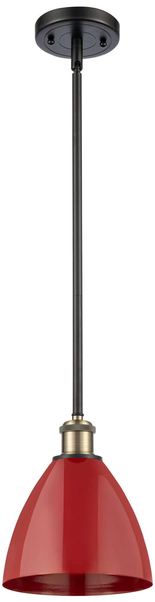 Plymouth Dome 7.5" Wide Black Brass Stem Hung Pendant w/ Red Shade