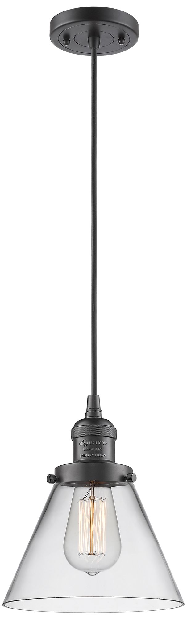 Franklin Restoration Cone 8" Bronze Corded Mini Pendant w/ Clear Shade