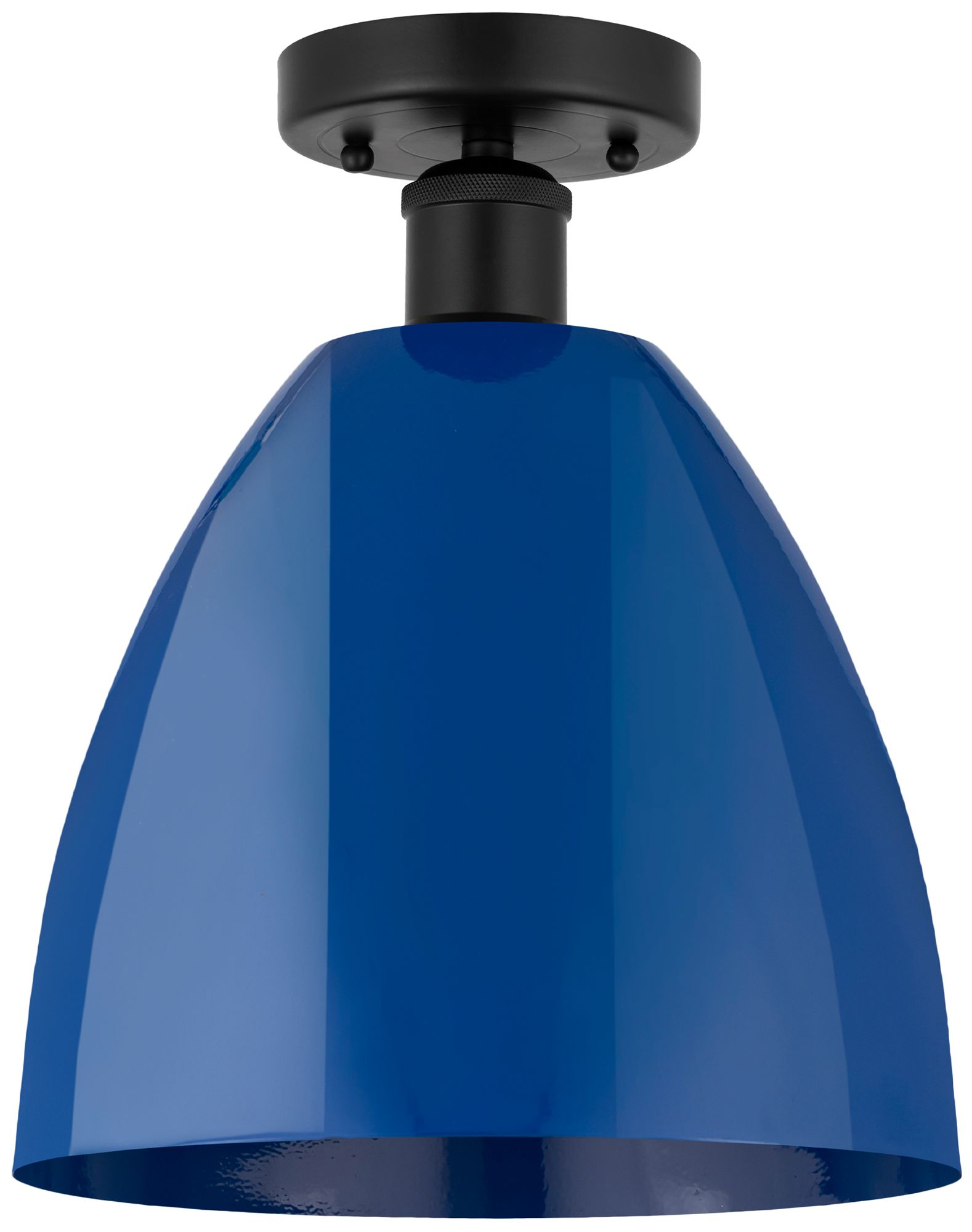 Edison Plymouth Dome 9" Wide Matte Black Semi Flush Mount w/ Blue Shad