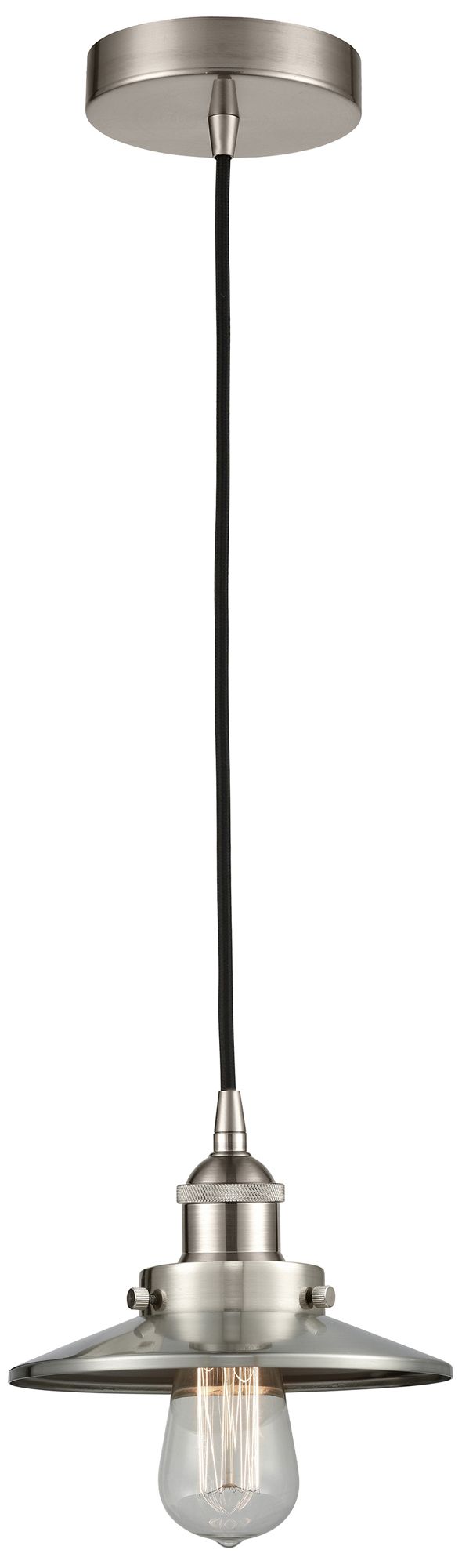 Railroad 8"W Satin Nickel Corded Mini Pendant w/ Satin Nickel Shade
