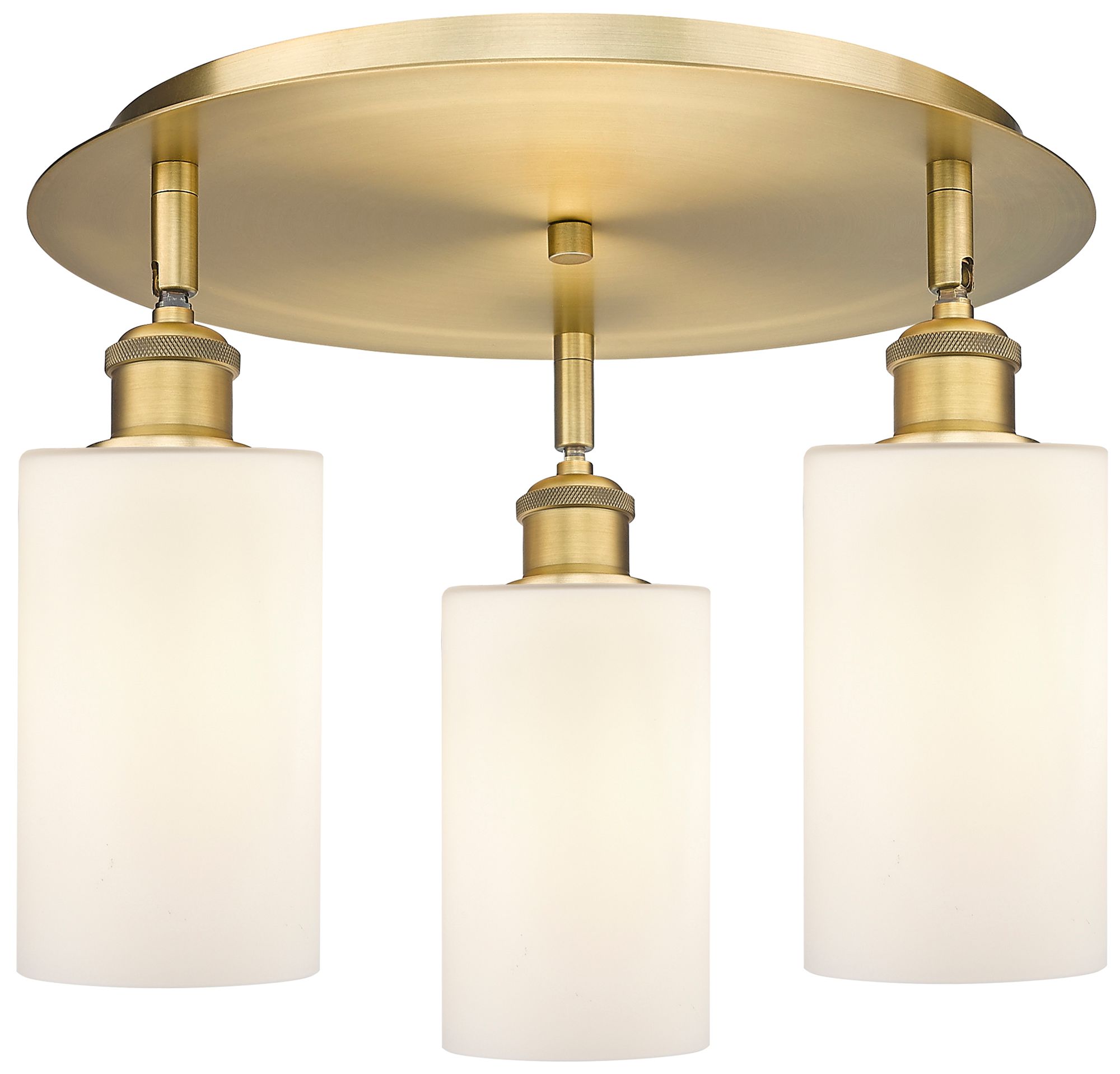 Clymer 15.63"W 3 Light Brushed Brass Flush Mount w/ Matte White Glass