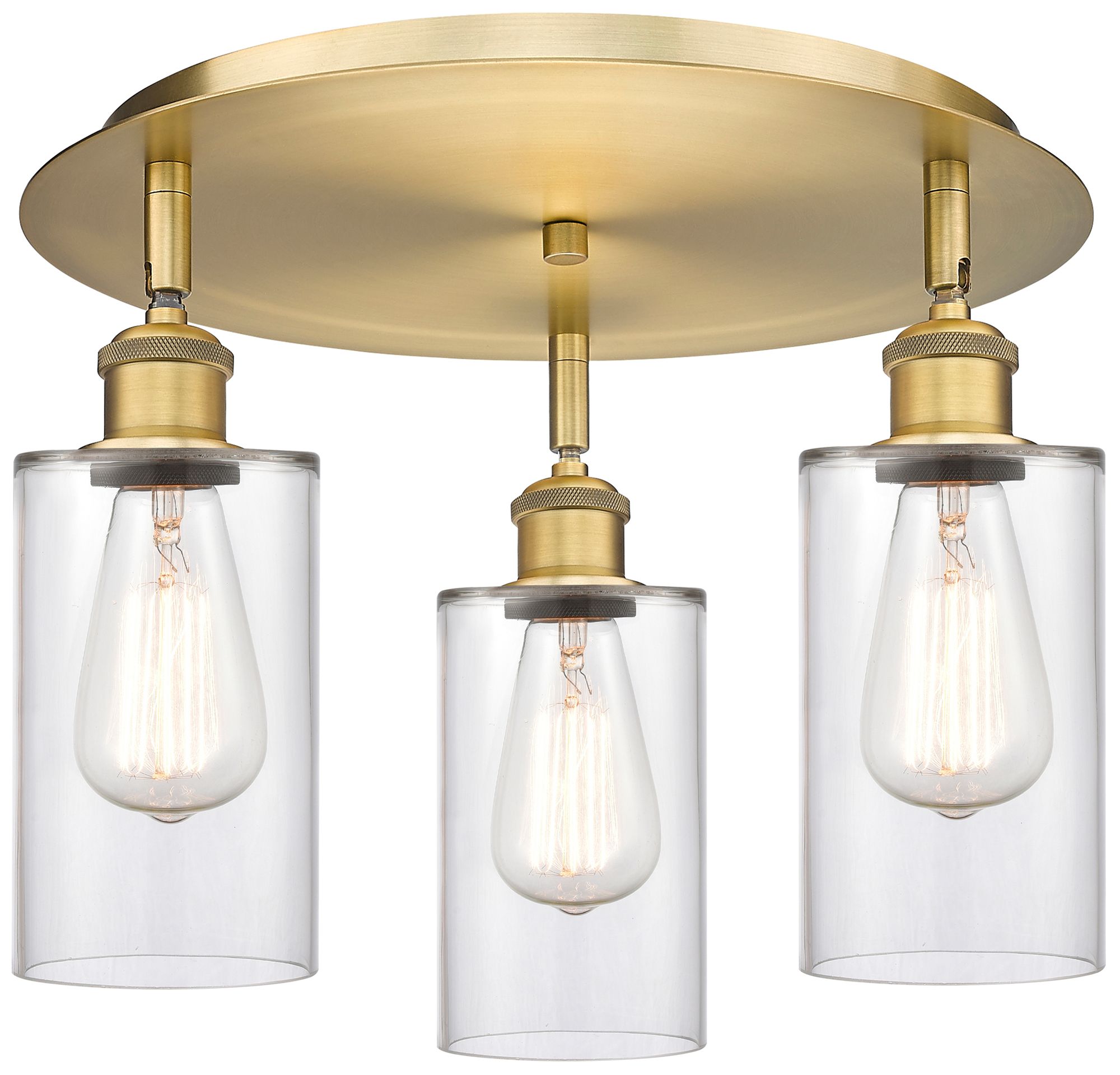 Clymer 15.63" Wide 3 Light Brushed Brass Flush Mount With Clear Glass