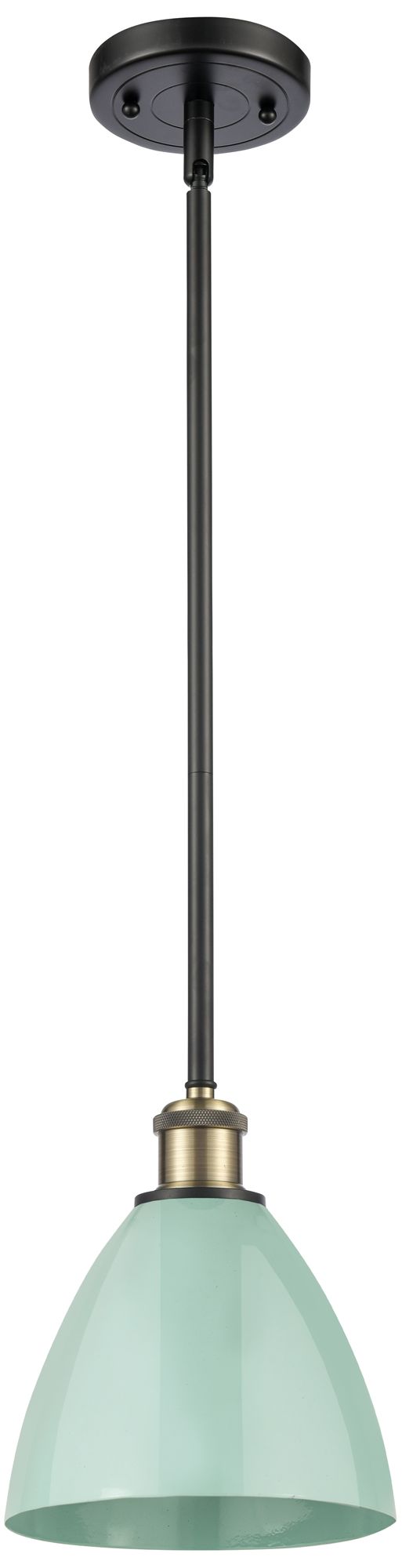 Plymouth Dome 7.5" Wide Black Brass Stem Hung Pendant w/ Seafoam Shade