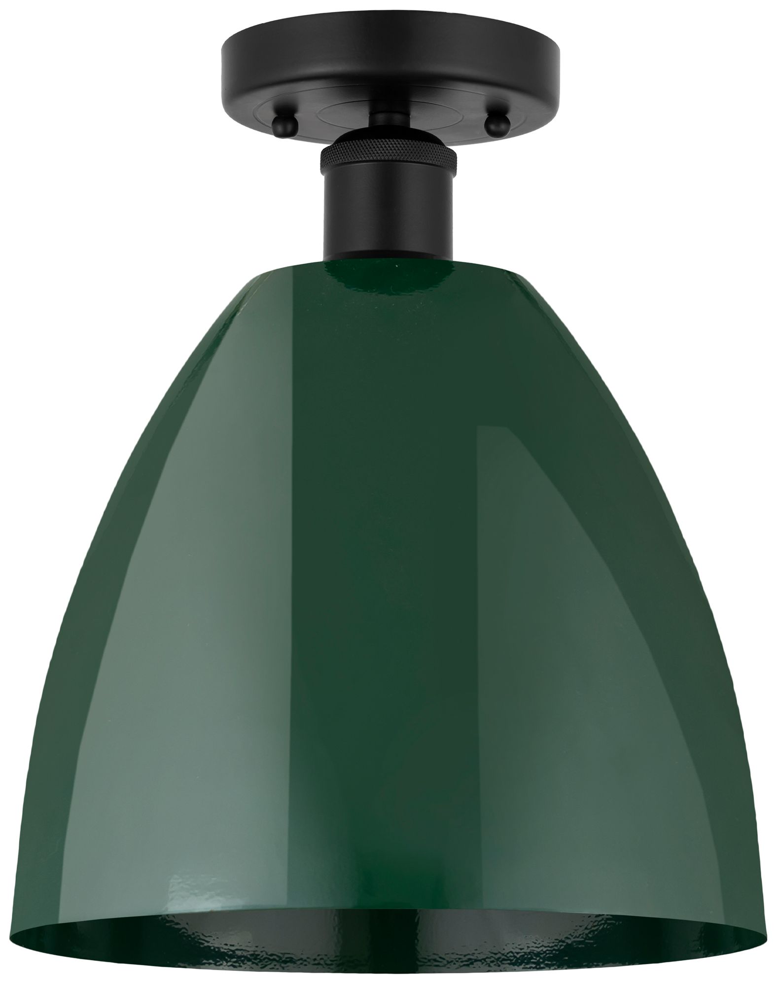 Edison Plymouth Dome 9" Wide Matte Black Semi Flush Mount w/ Green Sha