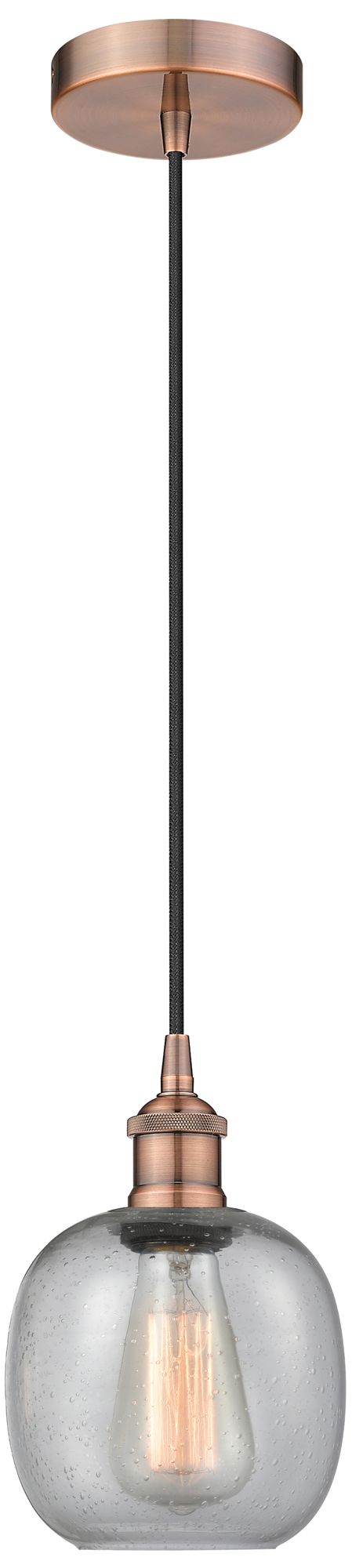 Edison Belfast 6" Antique Copper Cord Hung Mini Pendant w/ Seedy Shade