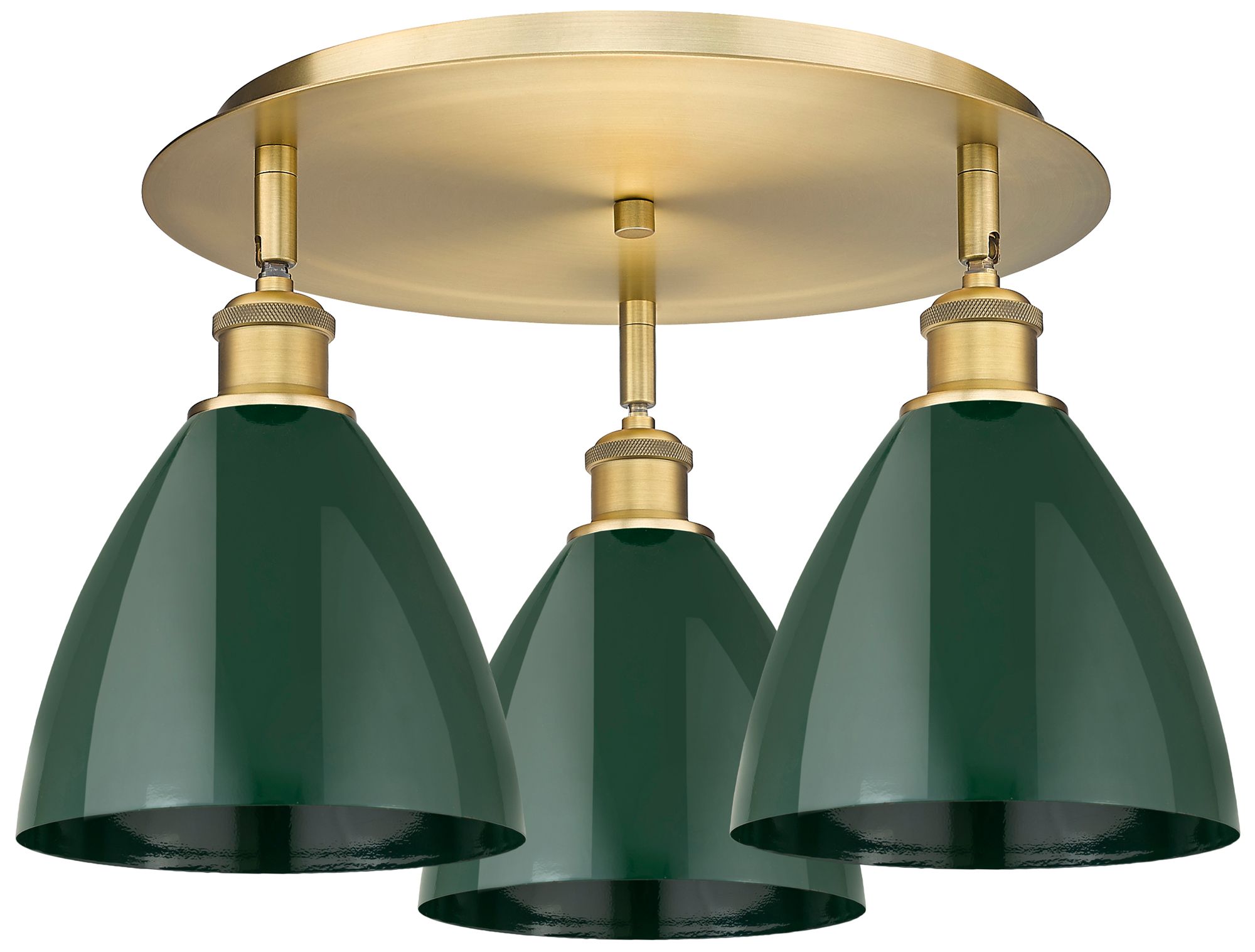Ballston Dome 19.25" Wide 3 Light Brushed Brass Flush Mount w/ Green S