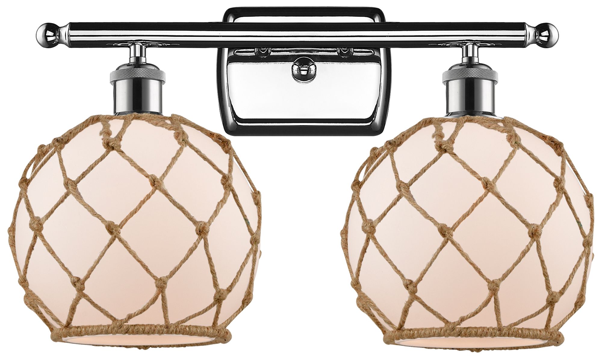 Farmhouse Rope 16"W 2 Light Chrome Bath Light w/ White and Brown Shade