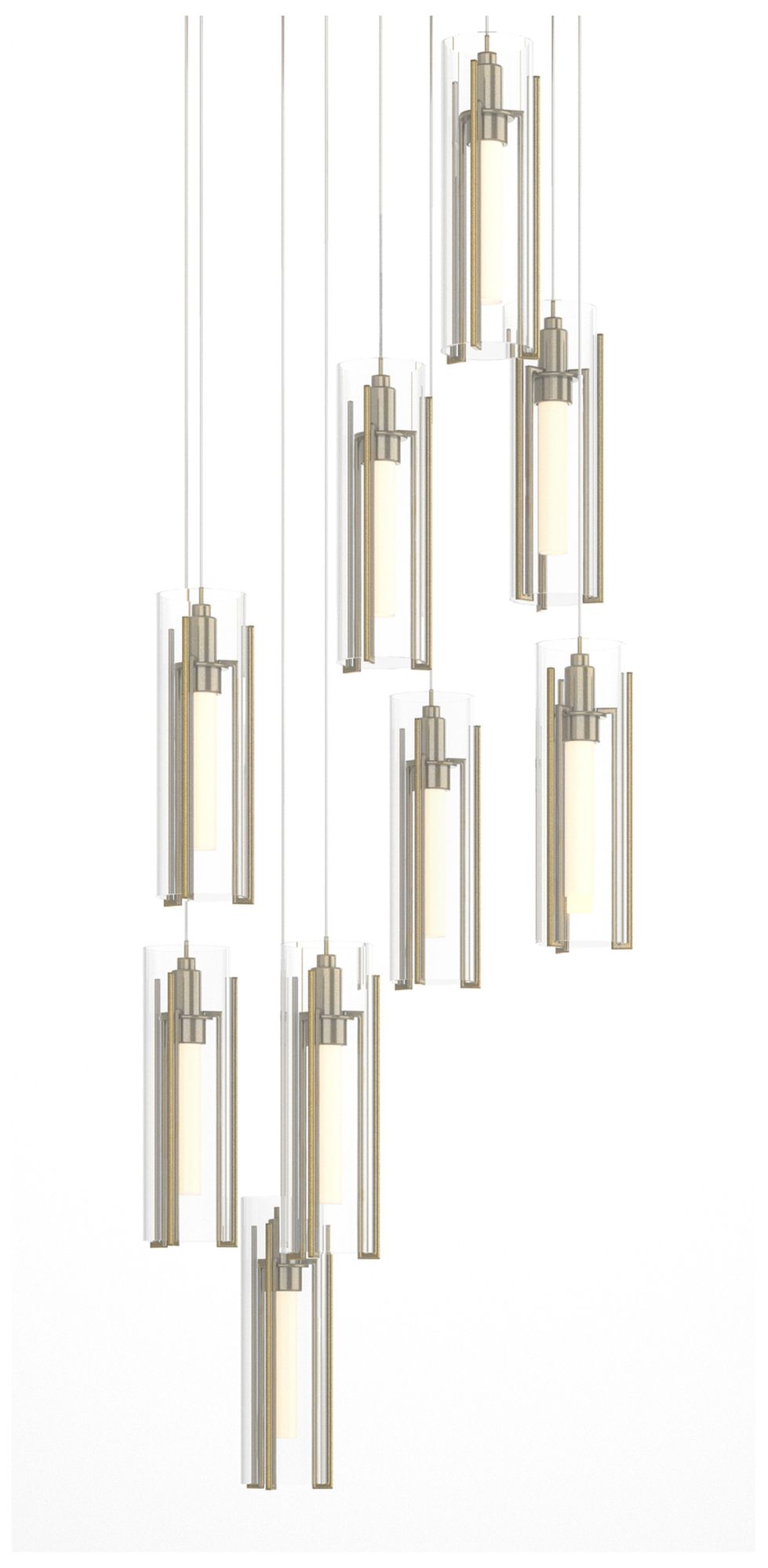 Exos 20.5"W 9-Light Round Modern Brass Long Pendant w/ Clear Glass Sha