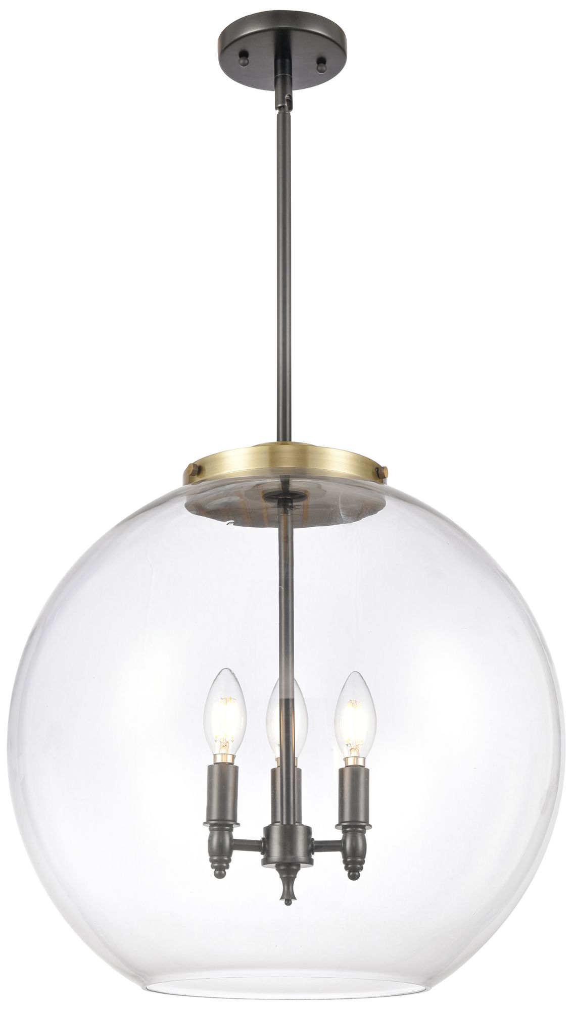 Athens 18.38" 3 Light Black Brass Pendant w/ Clear Shade