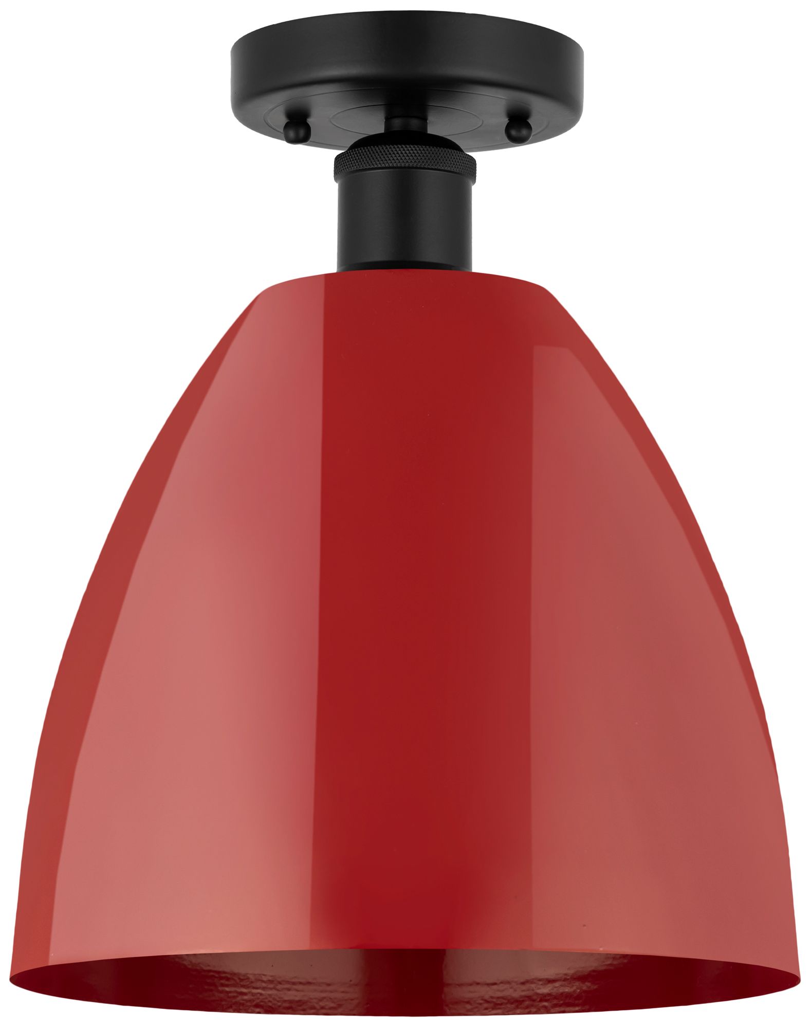 Edison Plymouth Dome 9" Wide Matte Black Semi Flush Mount w/ Red Shade