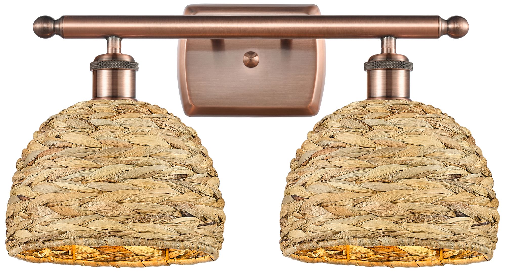 Woven Rattan 18"W 2 Light Antique Copper Bath Light With Natural Shade