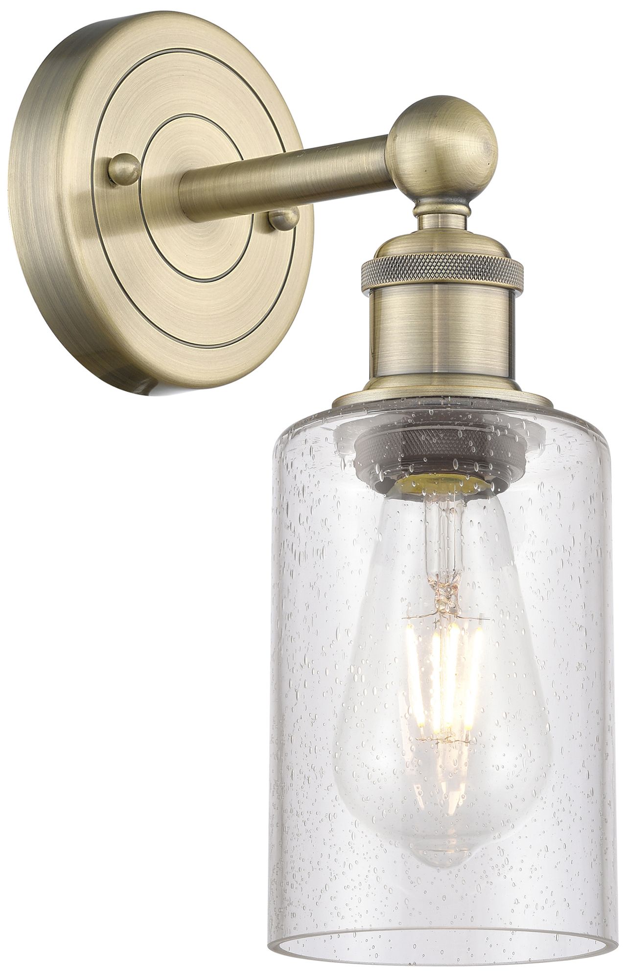 Clymer 2.6" High Antique Brass Sconce With Seedy Shade