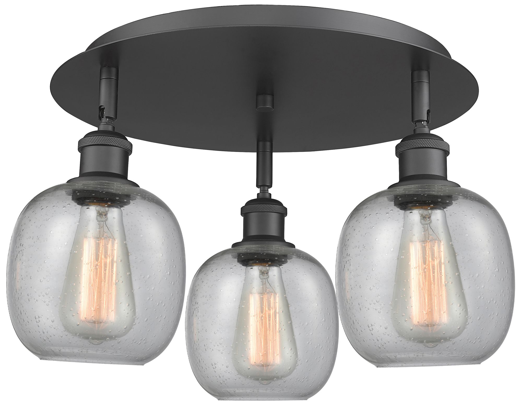 Belfast 17.75" Wide 3 Light Matte Black Flush Mount With Seedy Glass S