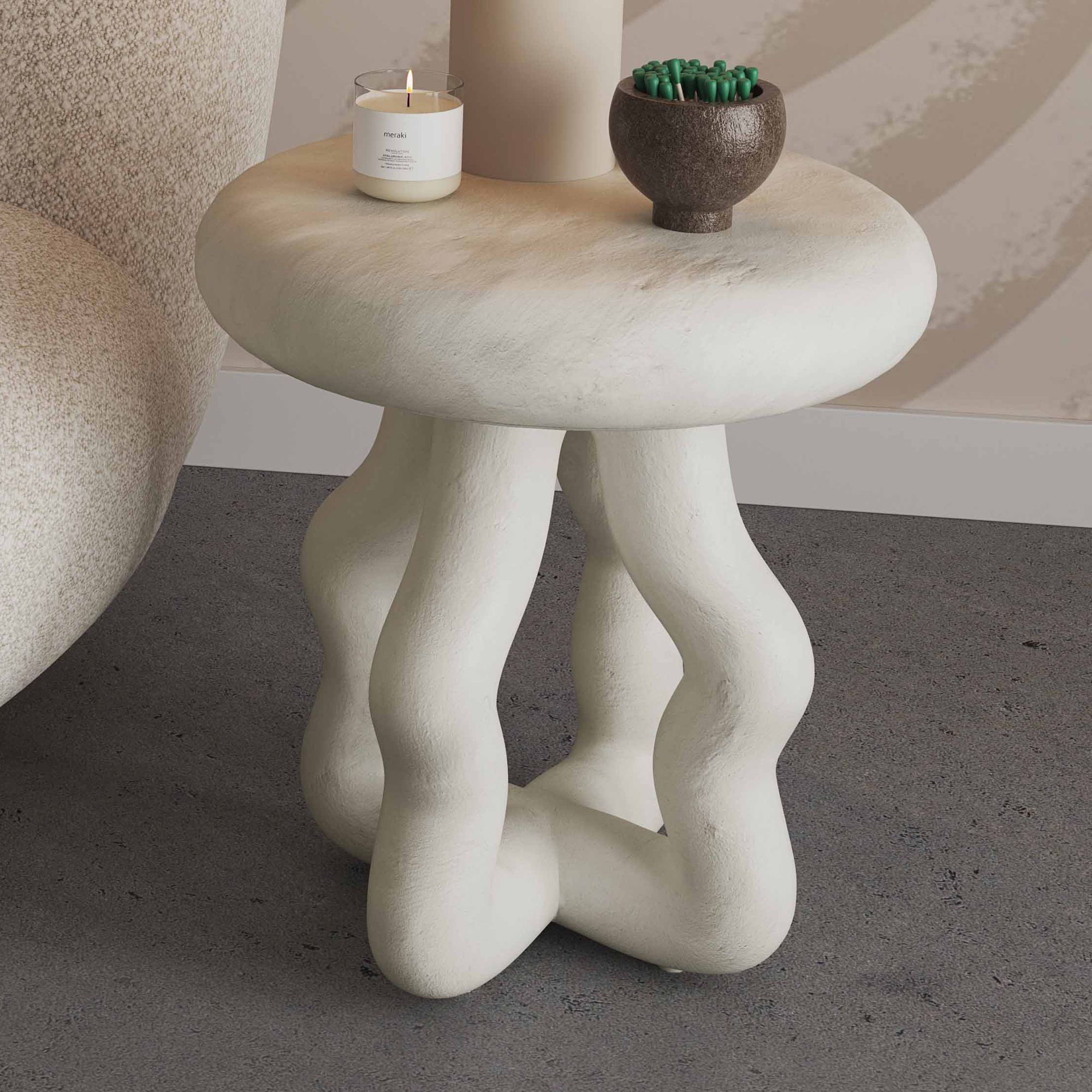 TOV Maddie 18" Wide Cream Textured Fiber Stone Round Side Table
