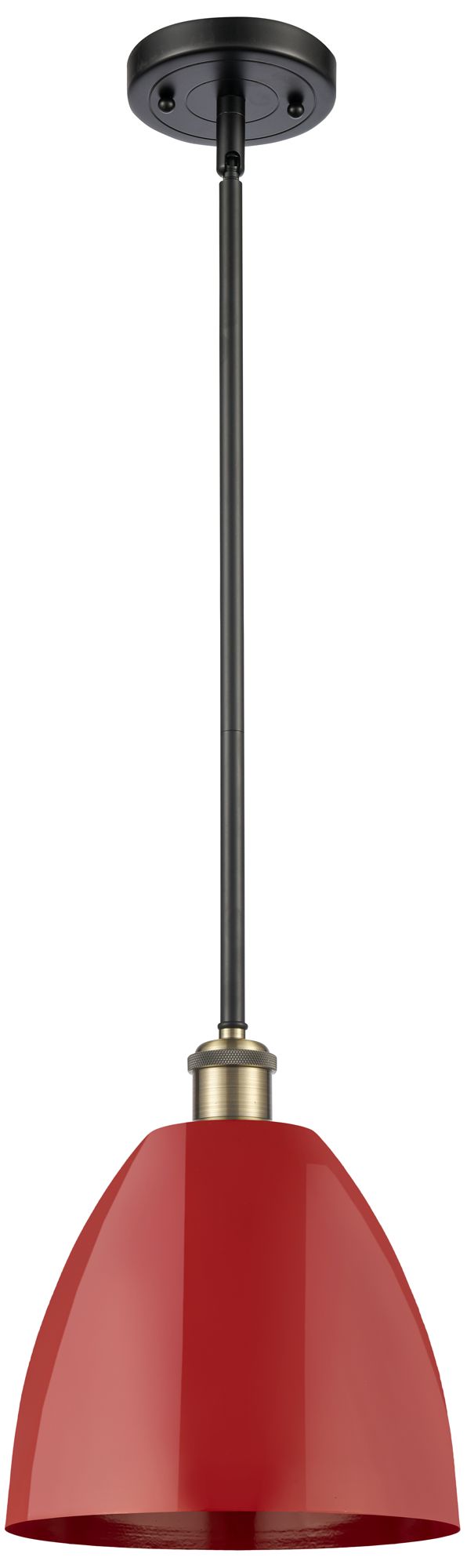 Plymouth Dome 9" Wide Black Brass Stem Hung Pendant w/ Red Shade