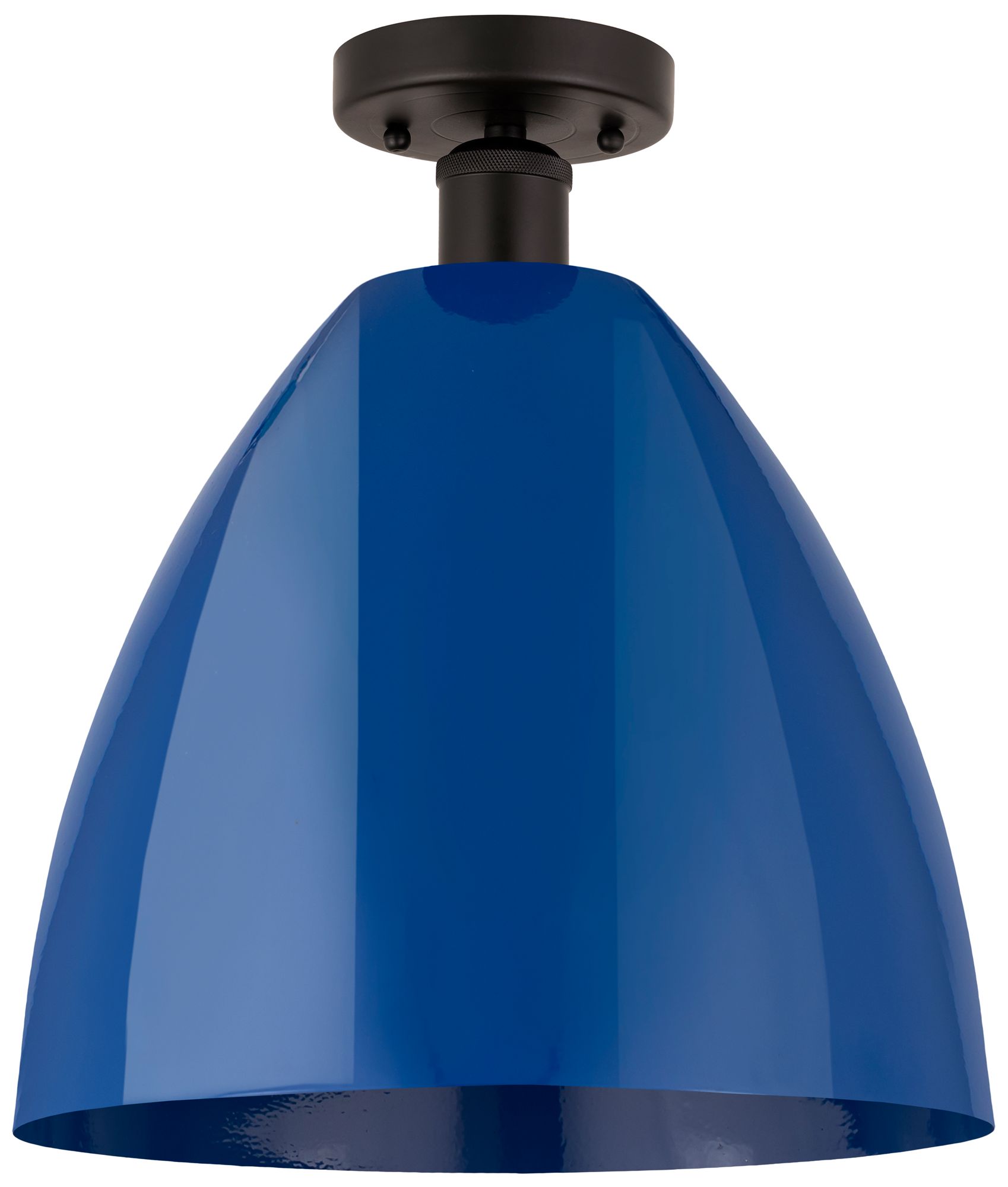 Edison Plymouth Dome 12" Wide Bronze Semi Flush Mount w/ Blue Shade