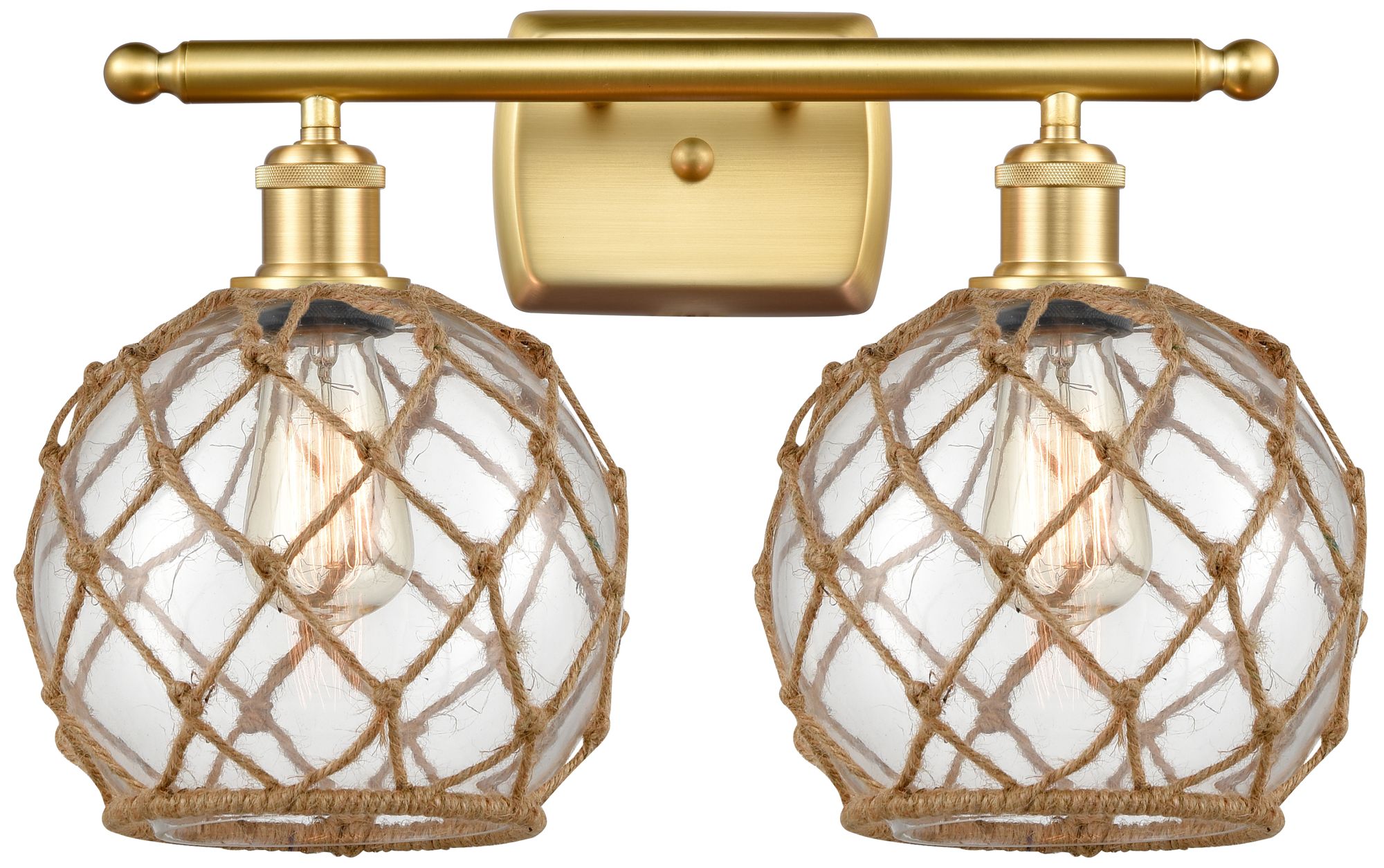 Farmhouse Rope 16"W 2 Light Satin Gold Bath Light w/ Clear and Brown S