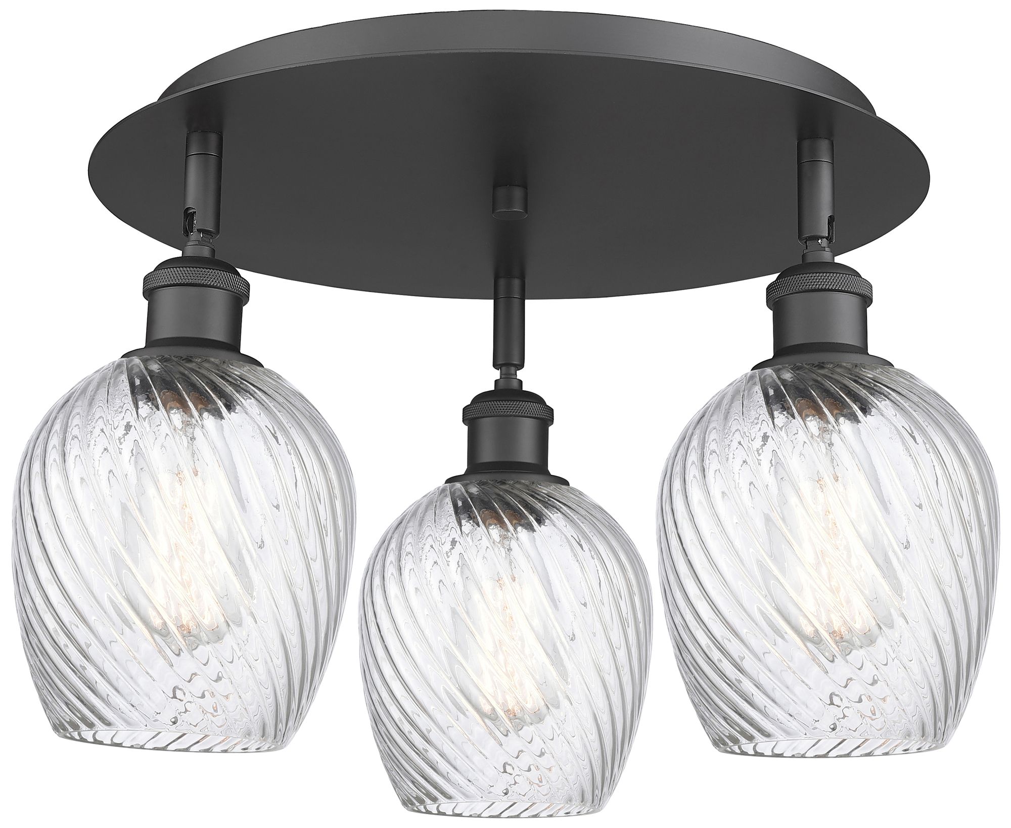 Salina 16.75"W 3 Light Matte Black Flush Mount w/ Spiral Fluted Glass
