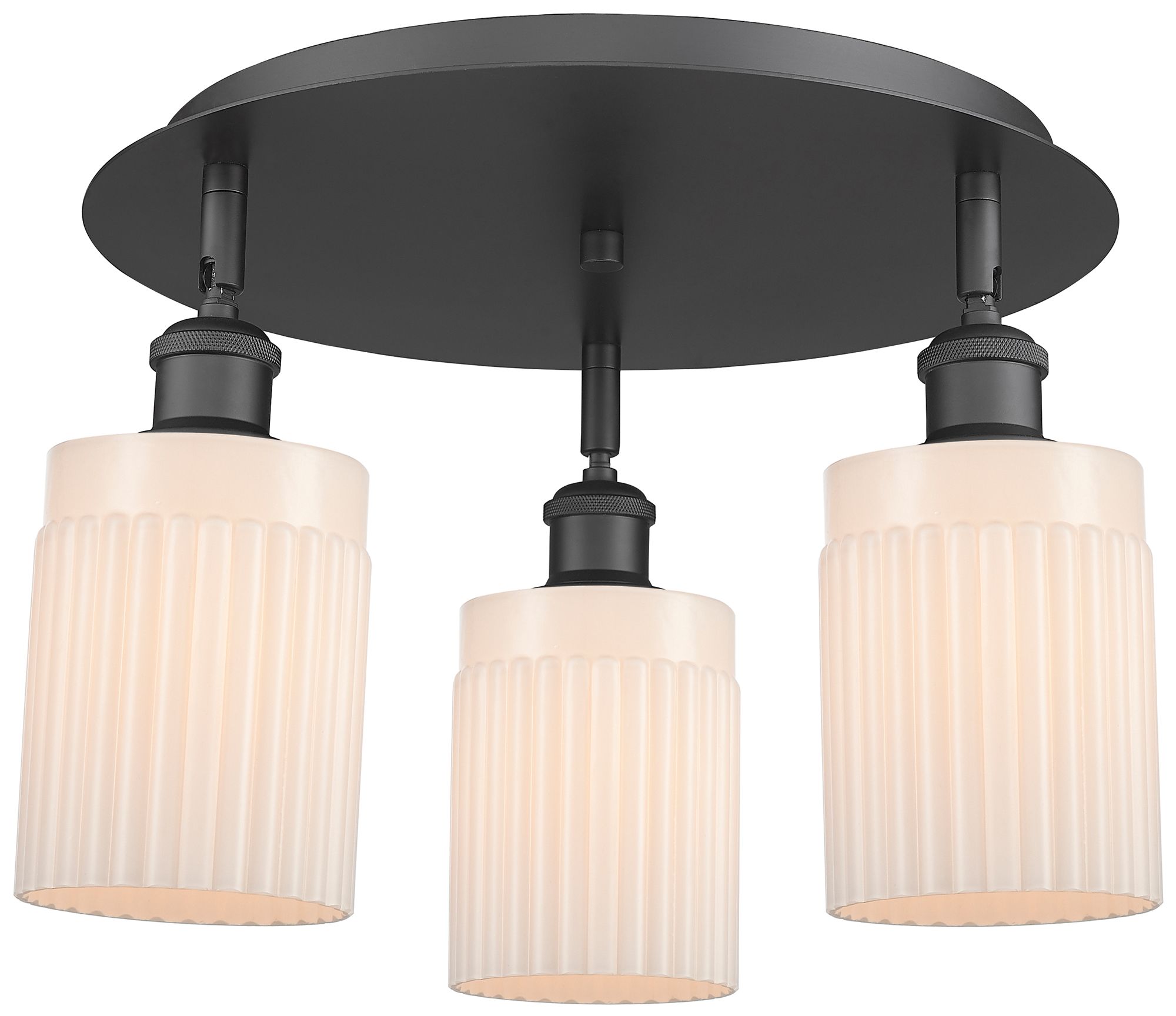 Hadley 16.25"W 3 Light Matte Black Flush Mount With Matte White Glass