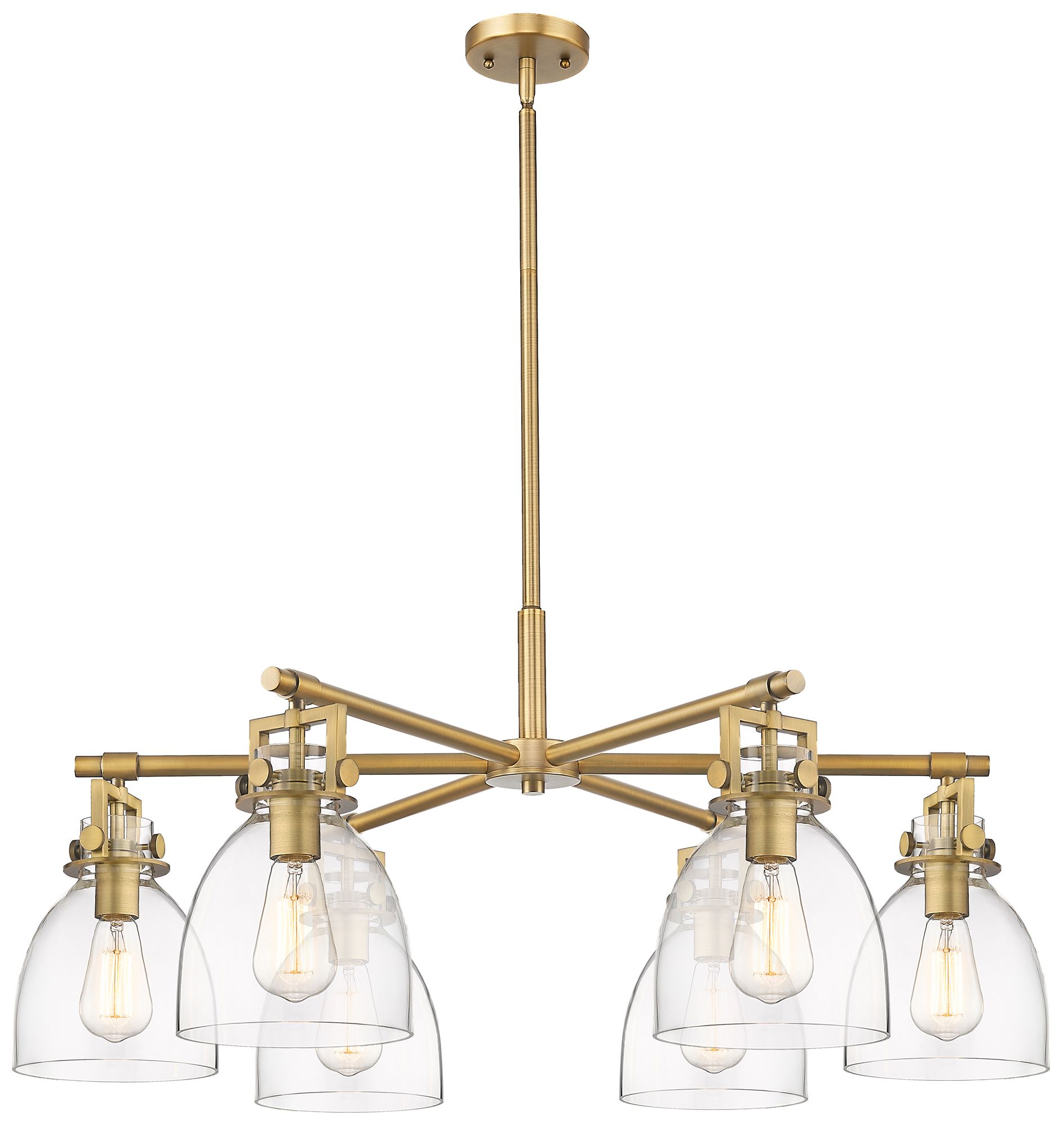 Newton Bell 26"W 6 Light Brushed Brass Stem Chandelier w/ Clear Shade