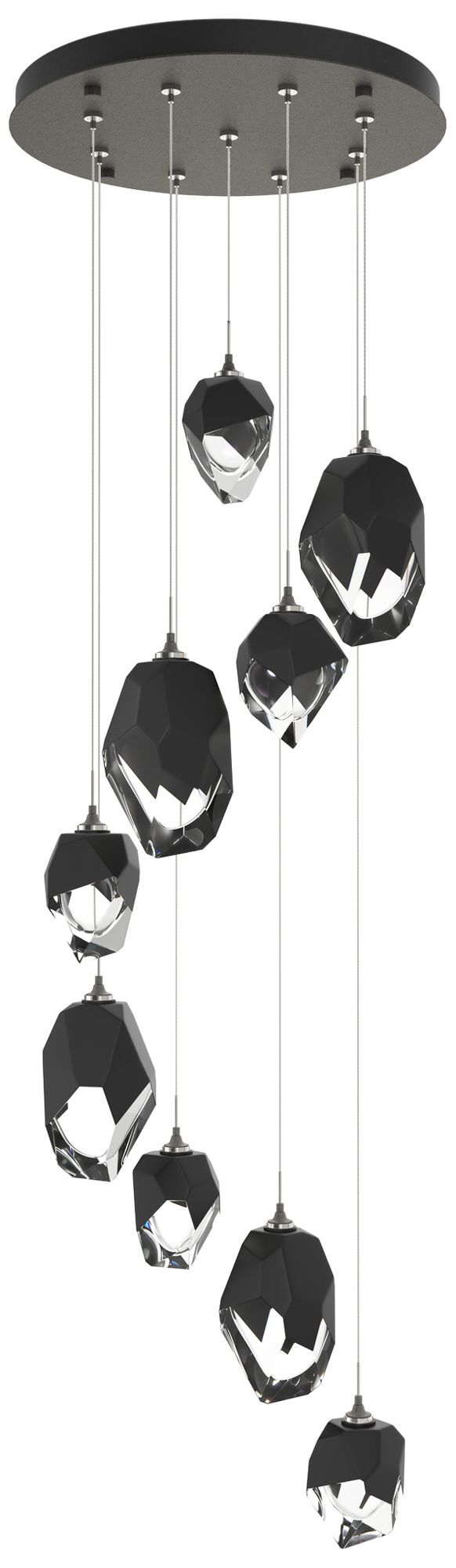 Chrysalis 20.5"W 9-Light Mixed Black Crystal Natural Iron Long Pendant