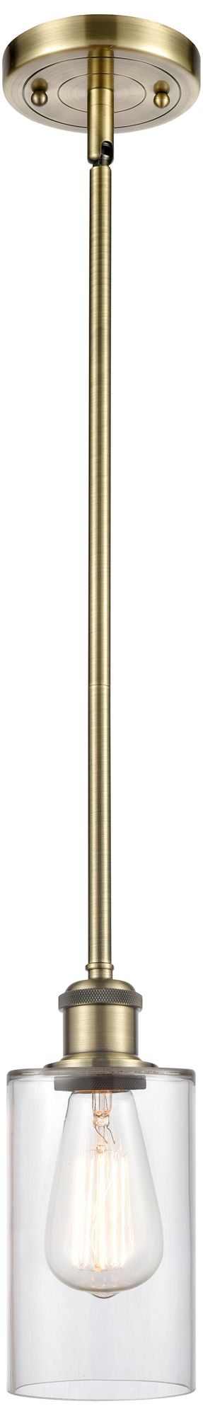 Clymer 4" Antique Brass Mini Pendant w/ Clear Shade