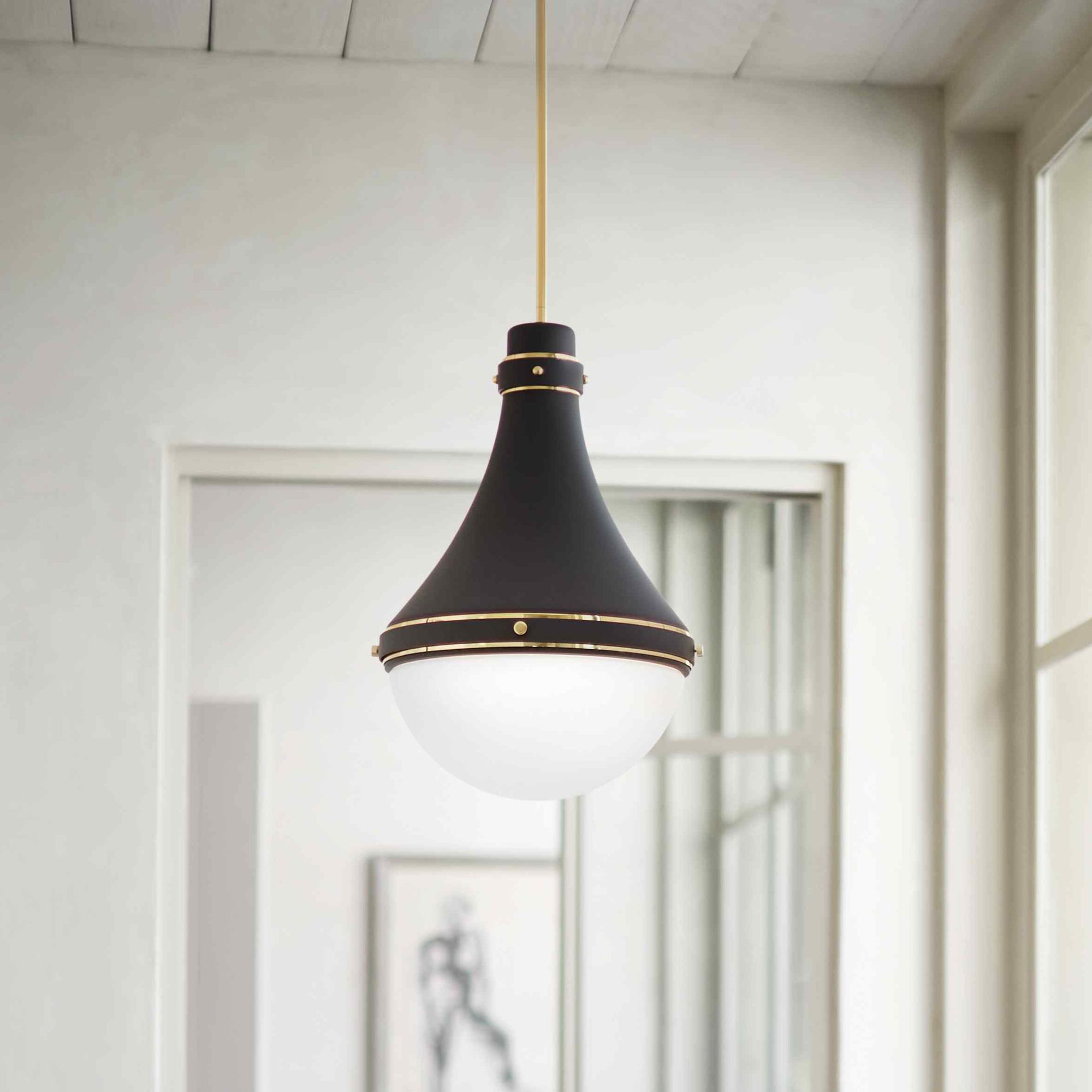 Hinkley Oliver 14 1/4" Wide Black with White Glass Pendant