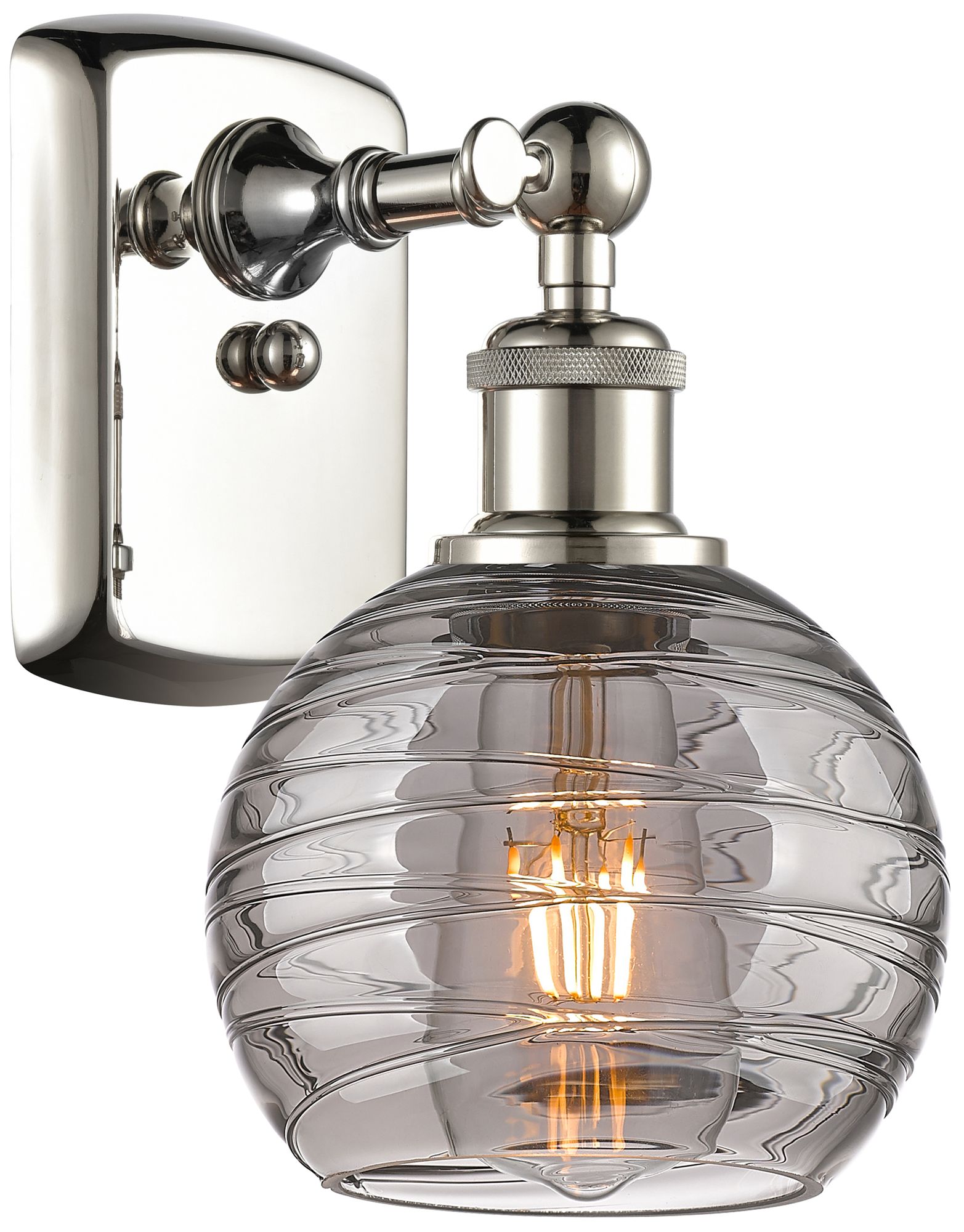 Ballston Athens 9.13"H Polished Nickel Sconce w/ Smoke Swirl Shade