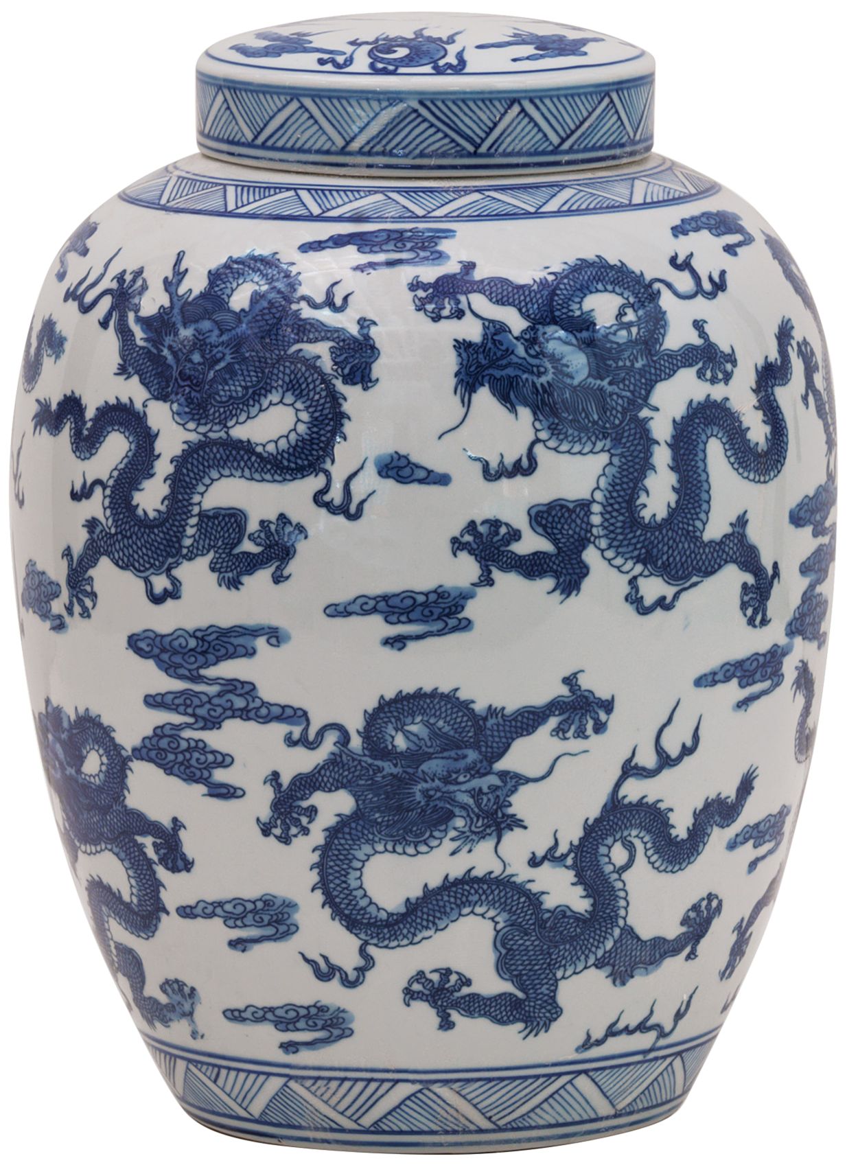Port 68 Dragon Navy and White 14" High Jar with Lift-Off Lid