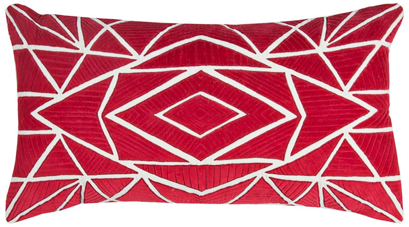 Red Geometric Velvet 26" x 14" Decorative Filled Pillow