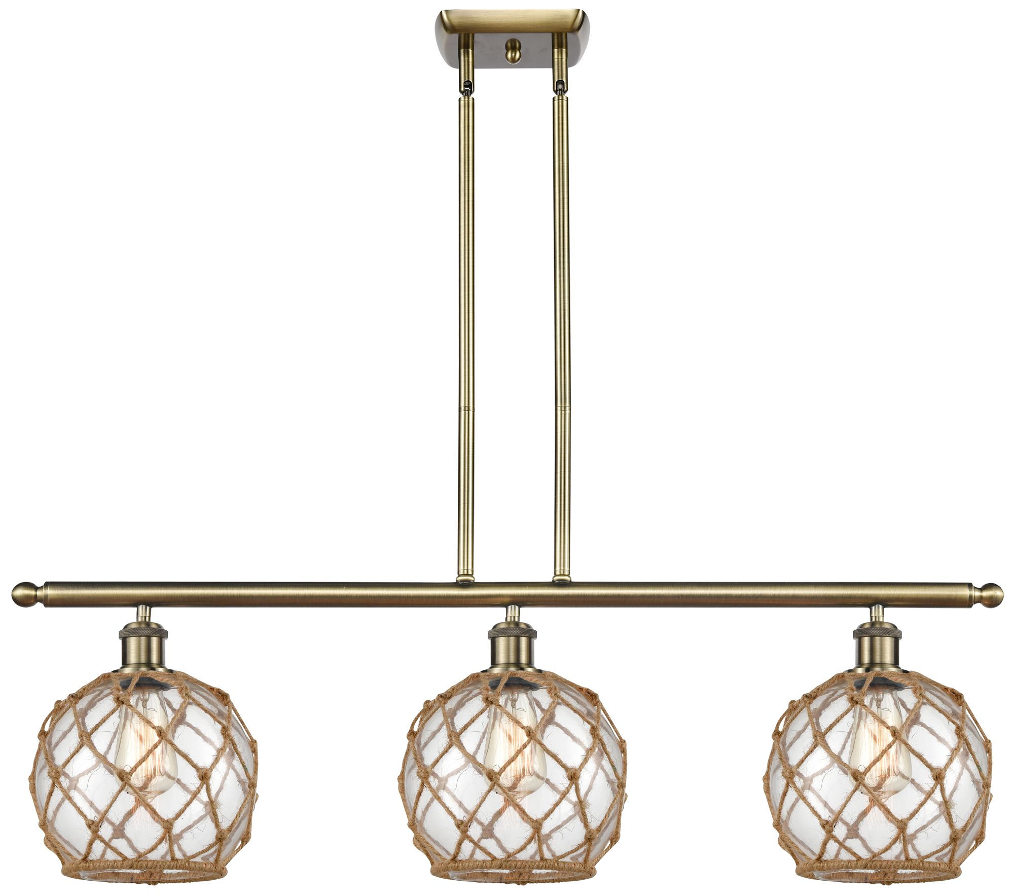 Farmhouse 36"W 3 Light Antique Brass Island Light w/ Clear and Brown S