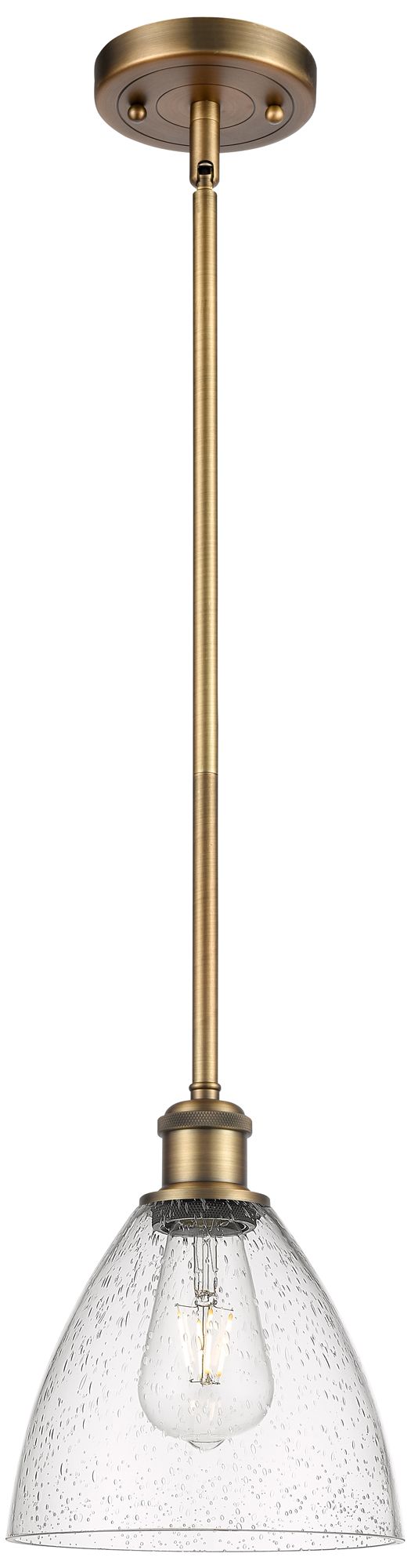 Bristol Glass 7.5" Wide Brushed Brass Stem Hung Mini Pendant w/ Seedy