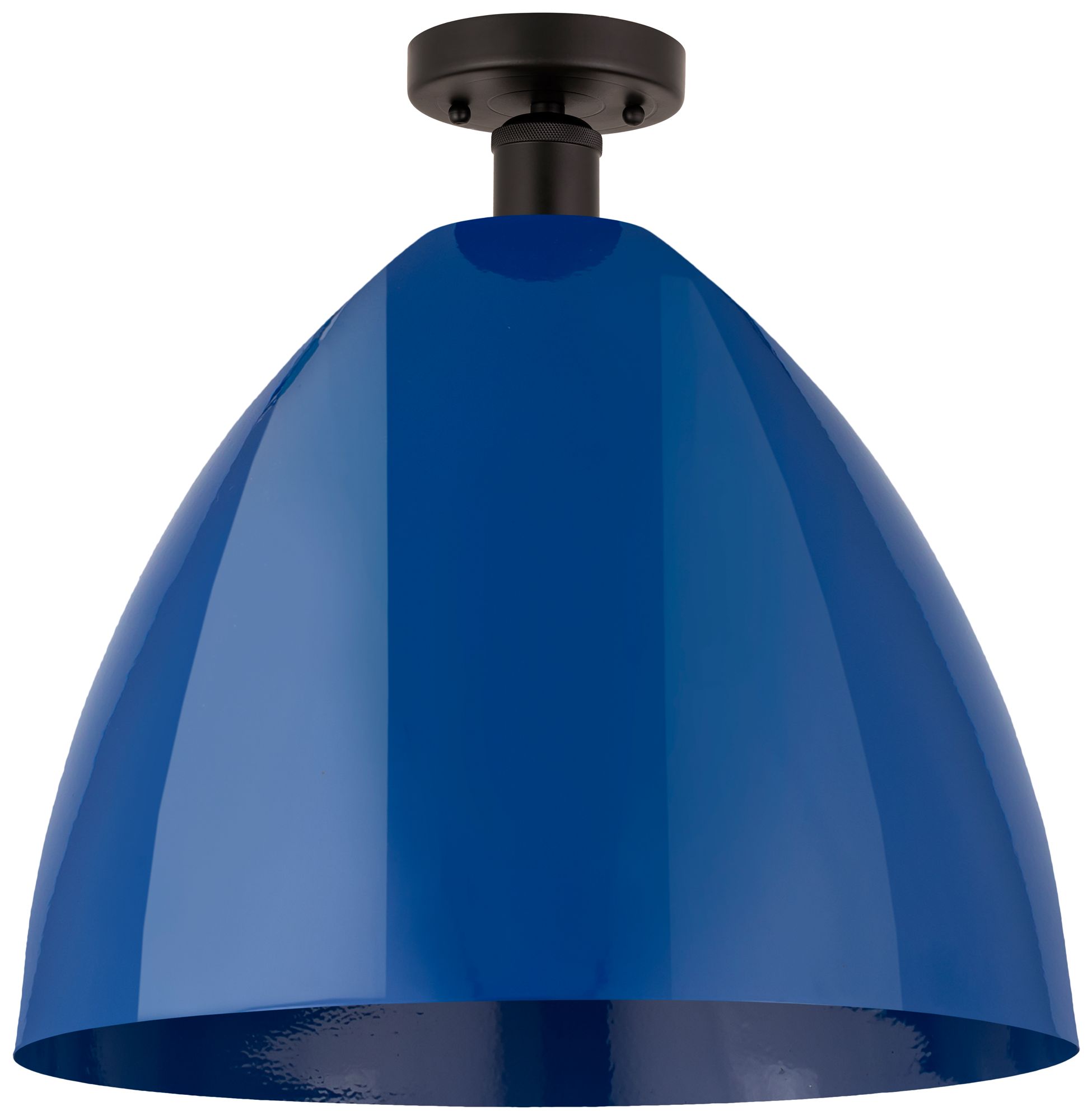 Edison Plymouth Dome 16" Wide Bronze Semi Flush Mount w/ Blue Shade