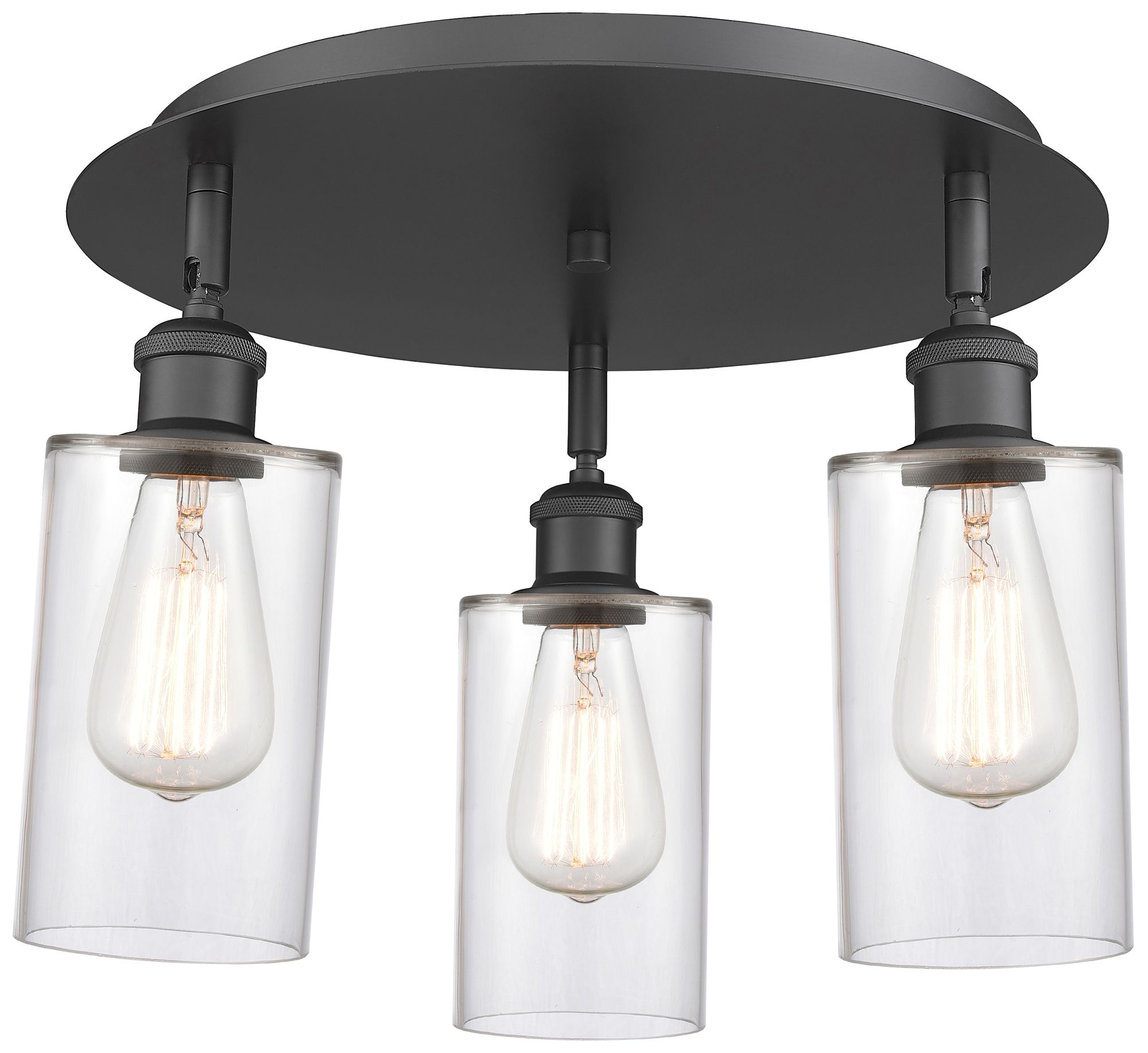 Clymer 15.63" Wide 3 Light Matte Black Flush Mount With Clear Glass Sh