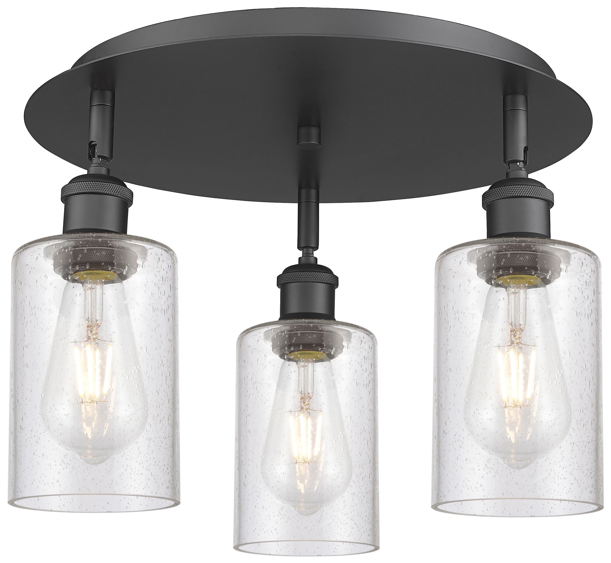Clymer 15.63" Wide 3 Light Matte Black Flush Mount With Seedy Glass Sh