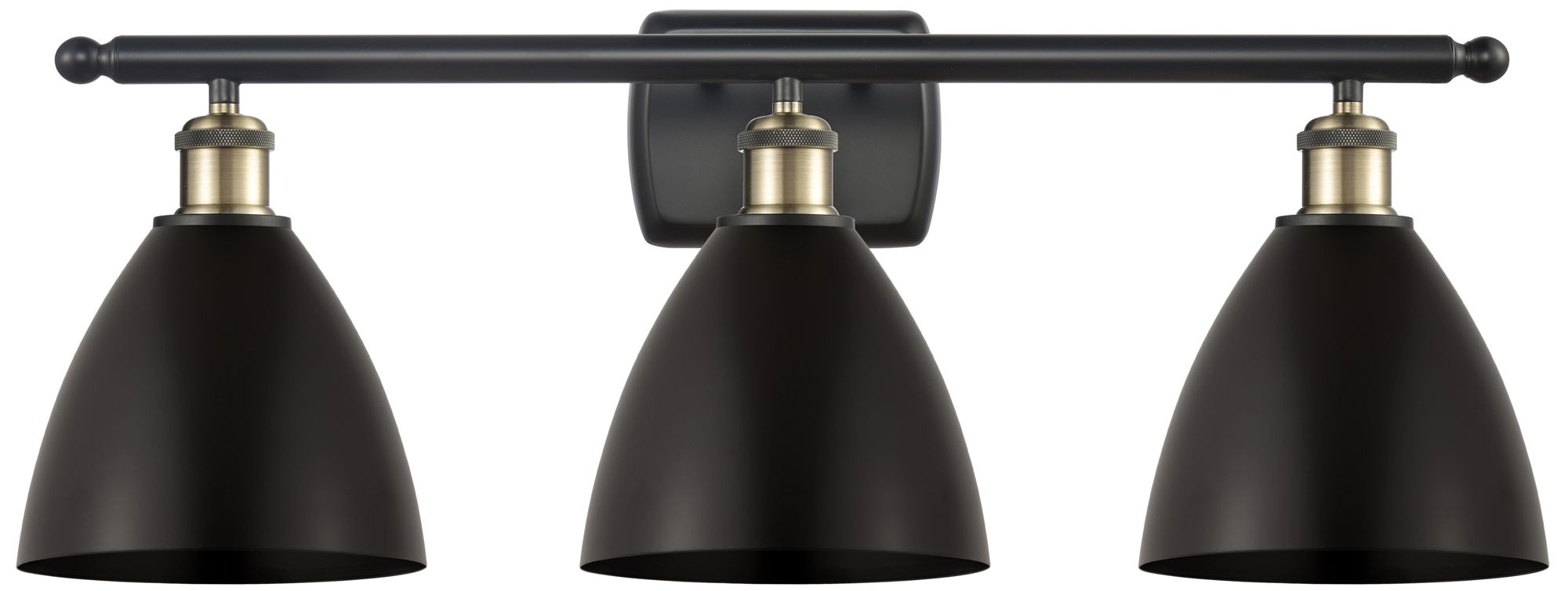 Metal Bristol 27.5"W 3 Light Black Brass Bath Light With Black Shade
